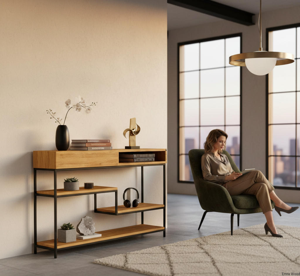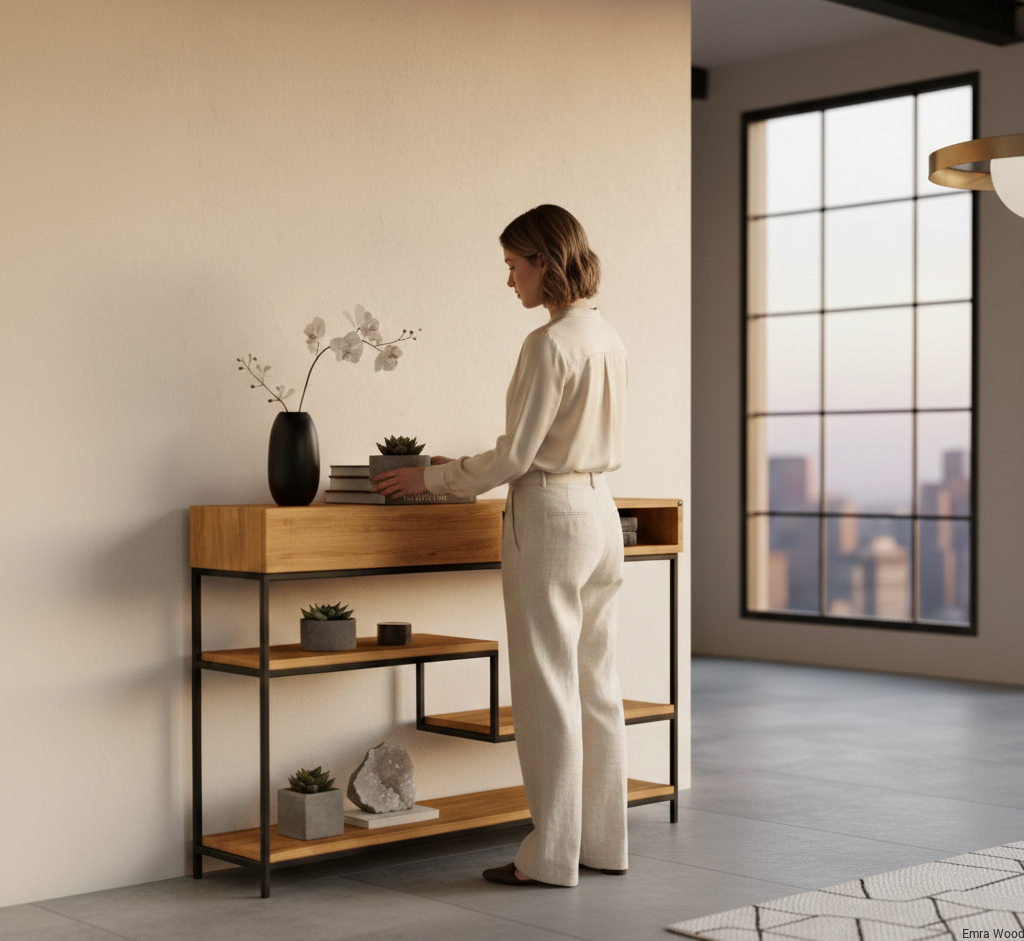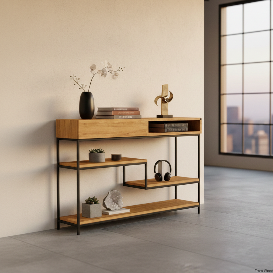 KONSOLA / Stelaż Stalowy Czarny / Drewno Lite model SKD-310 produkowana w rozmiarach od 50 cm do 200 cm