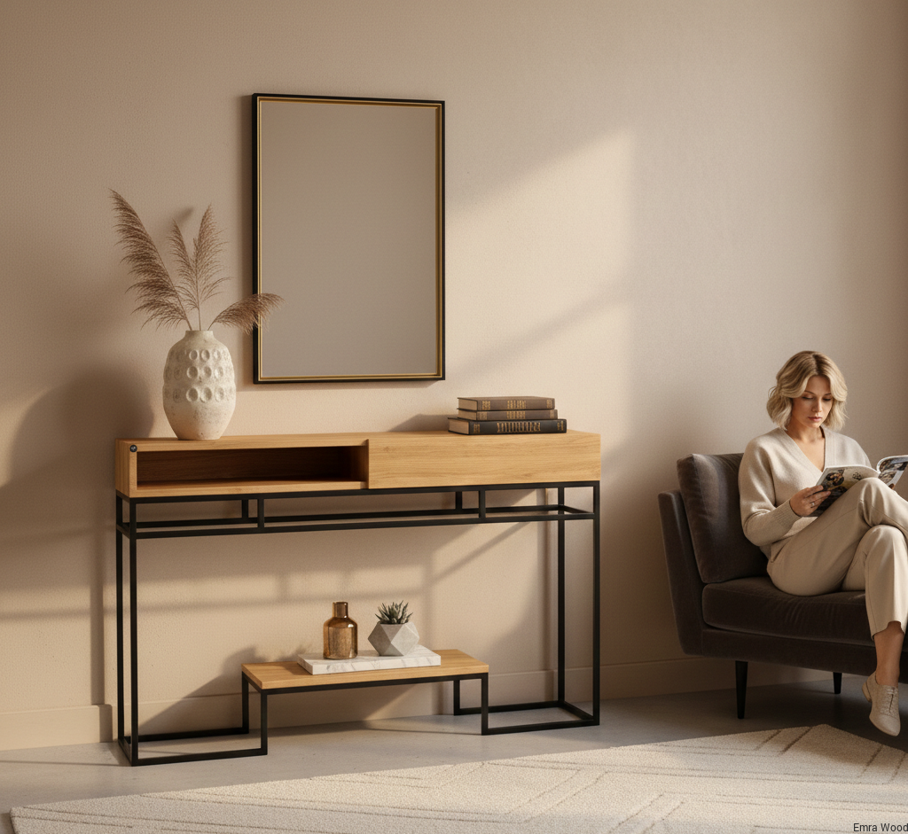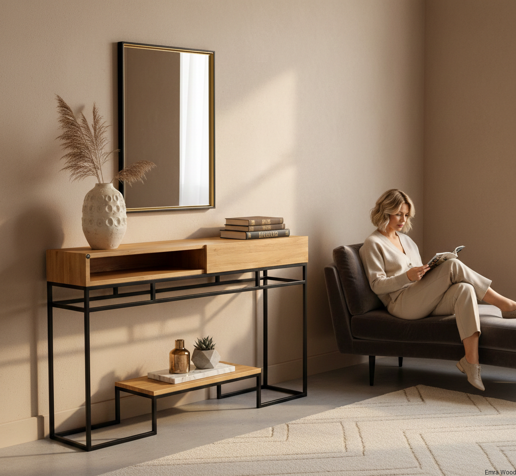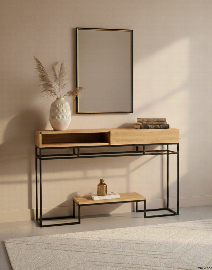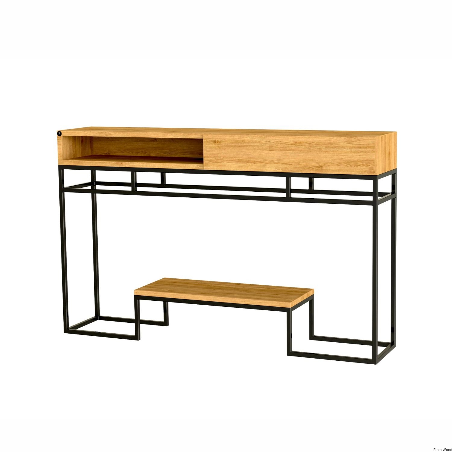 KONSOLA / Stelaż Stalowy Czarny / Drewno Lite model SKD-320 produkowana w rozmiarach od 50 cm do 200 cm