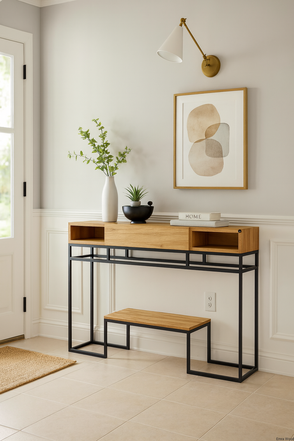 KONSOLA / Stelaż Stalowy Czarny / Drewno Lite model SKD-323 produkowana w rozmiarach od 50 cm do 200 cm