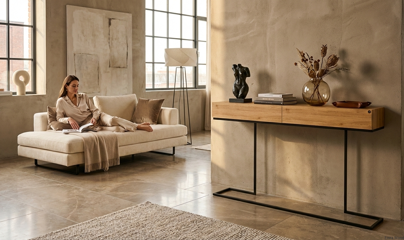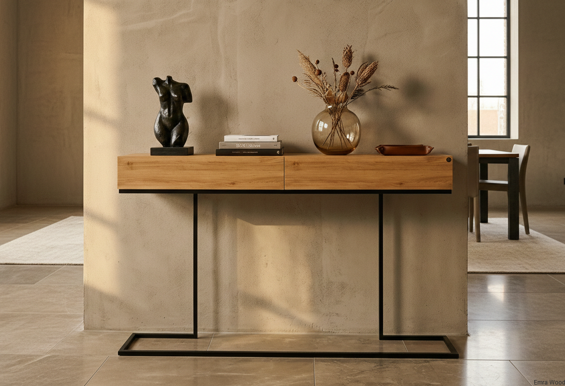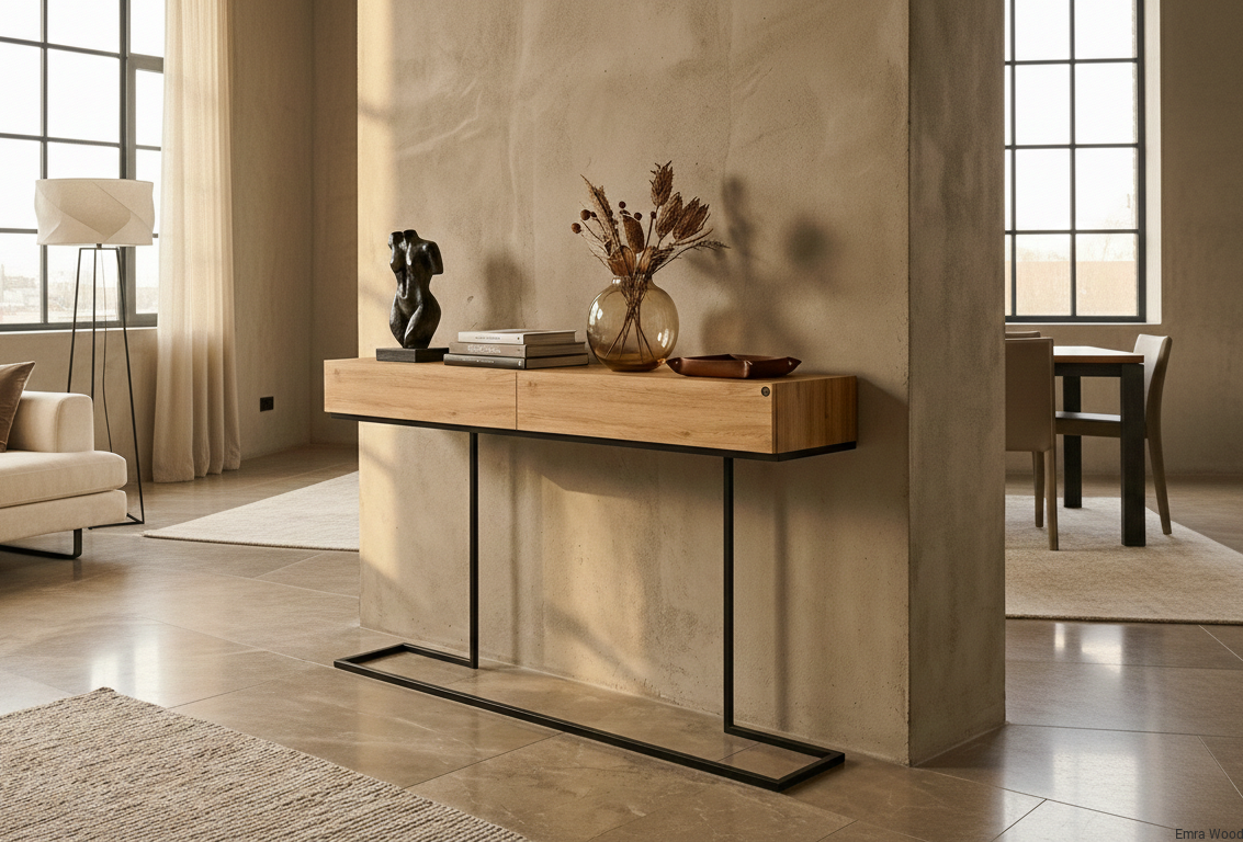 KONSOLA / Stelaż Stalowy Czarny / Drewno Lite model SKD-329 produkowana w rozmiarach od 50 cm do 200 cm