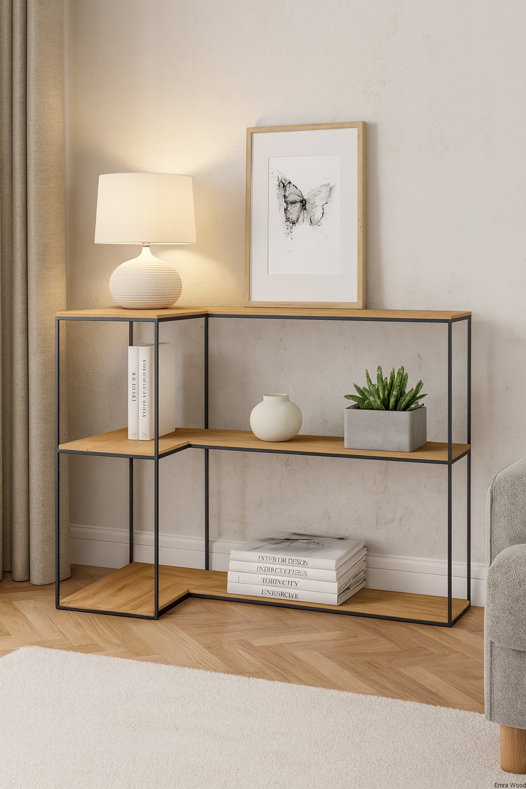 KONSOLA - REGAŁ / Stelaż Stalowy Czarny / Gatunek Drewna DĄB model SKD-363 produkowana w rozmiarach od 50 cm do 200 cm