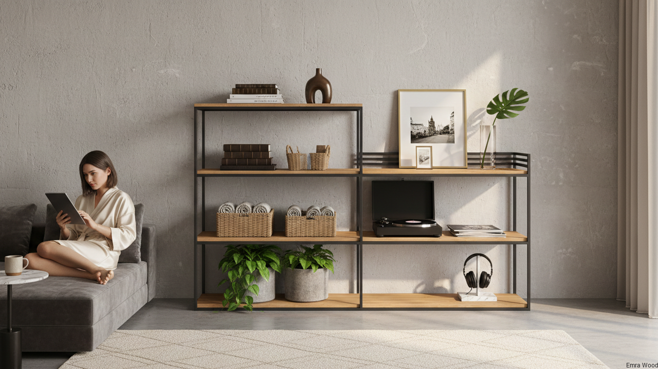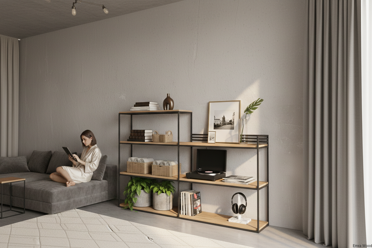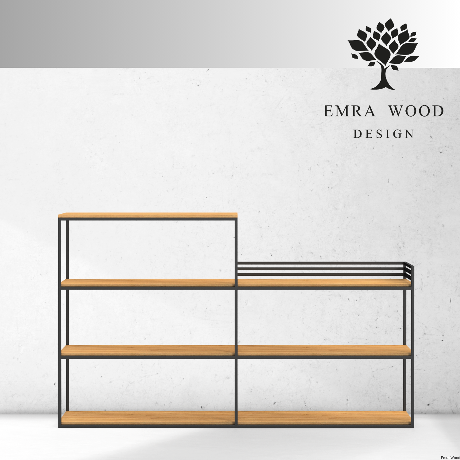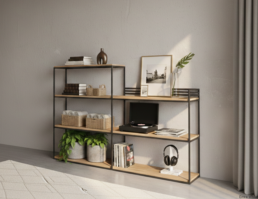 KONSOLA - REGAŁ / Stelaż Stalowy Czarny / Gatunek Drewna DĄB model SKD-365 produkowana w rozmiarach od 50 cm do 200 cm