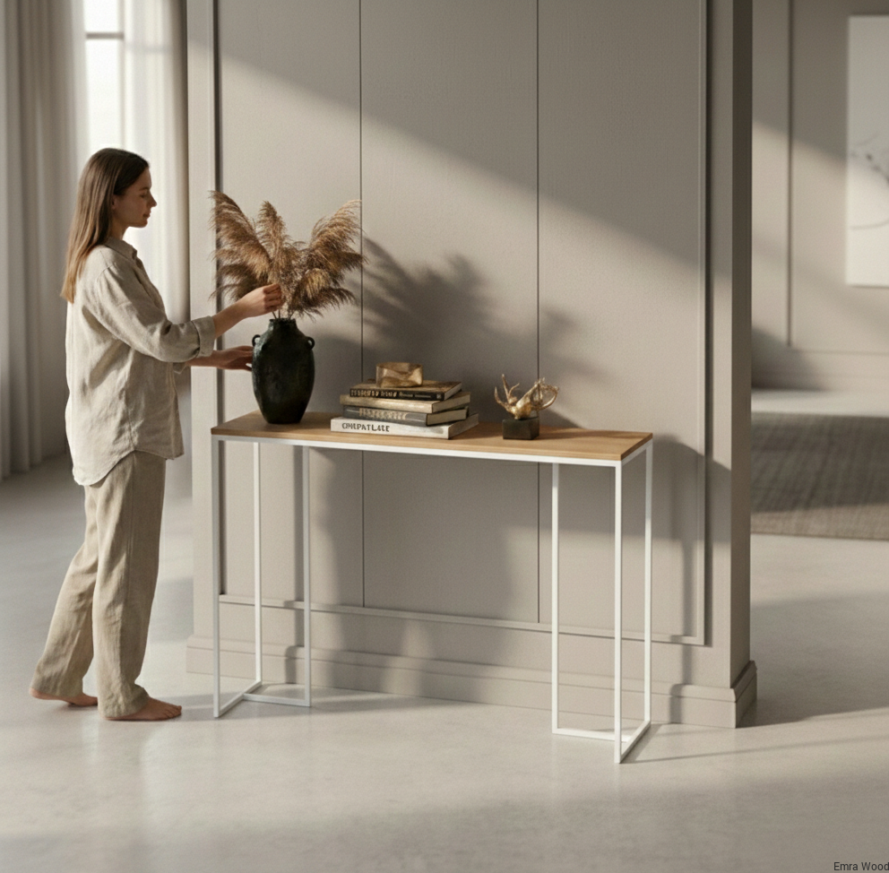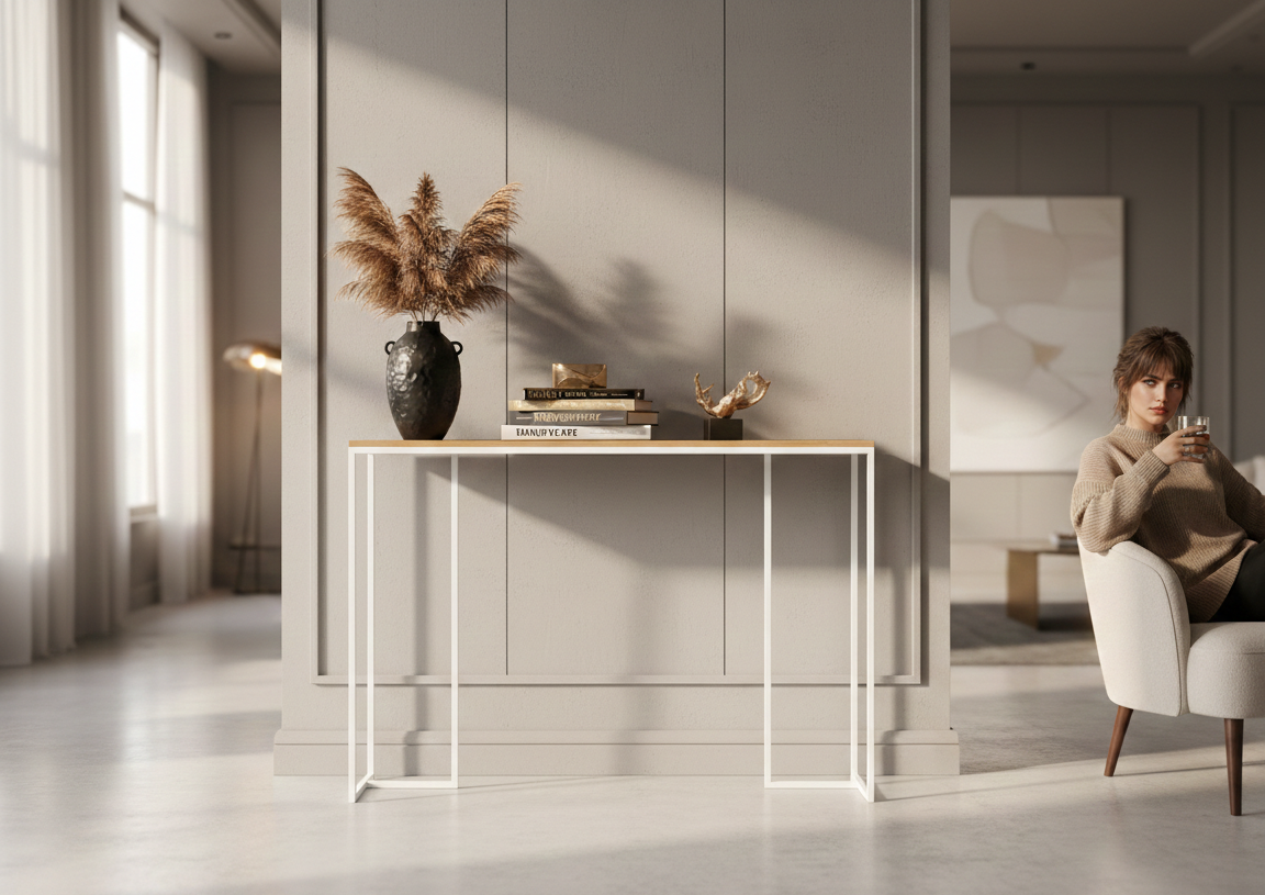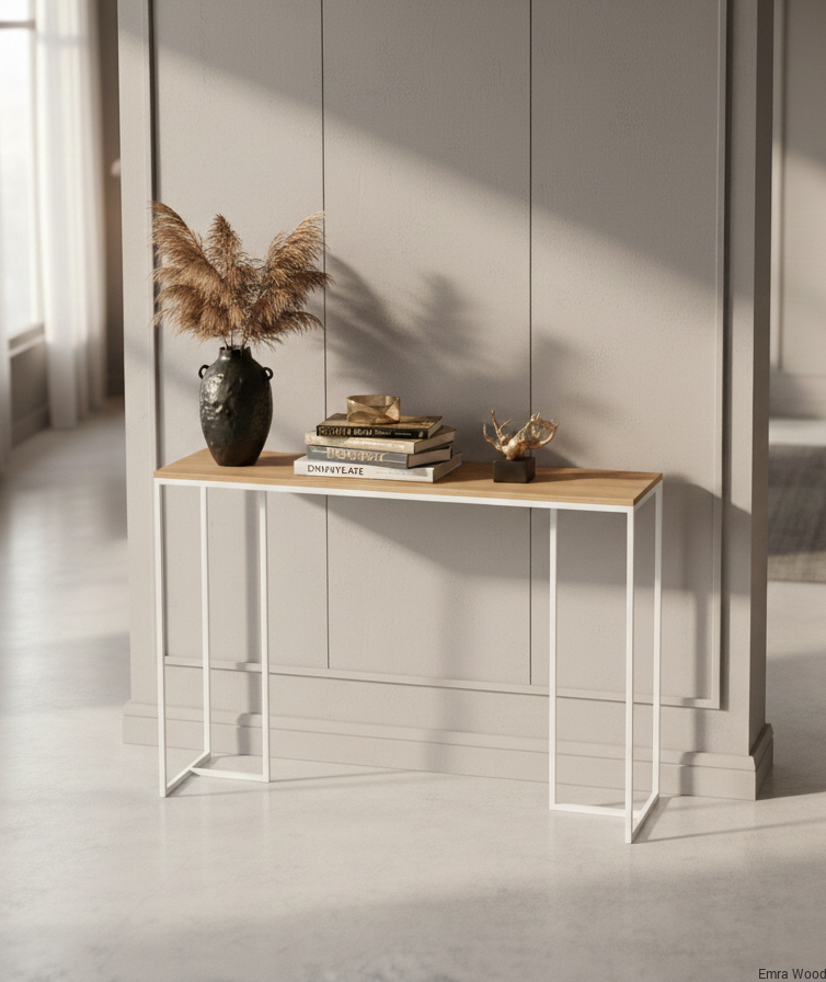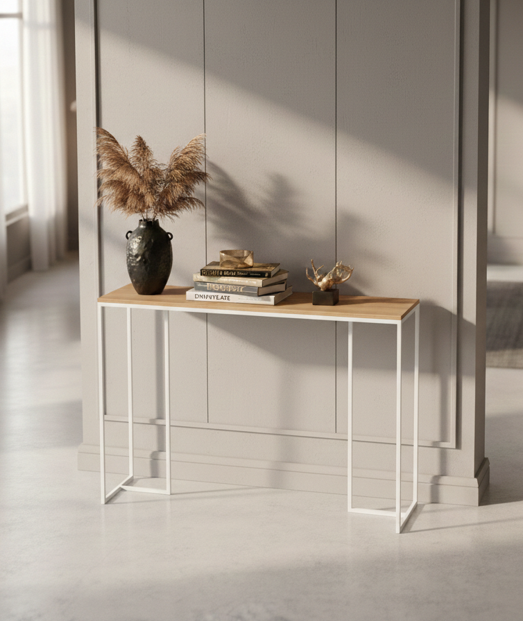 KONSOLA - REGAŁ / Stelaż Stalowy Biały / Gatunek Drewna DĄB model SKD-384 produkowana w rozmiarach od 100 cm do 200 cm
