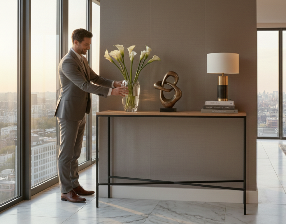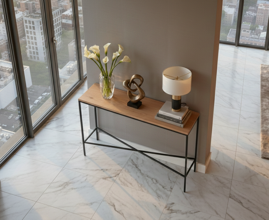 KONSOLA - REGAŁ / Stelaż Stalowy Czarny / Gatunek Drewna DĄB model SKD-385 produkowana w rozmiarach od 100 cm do 200 cm