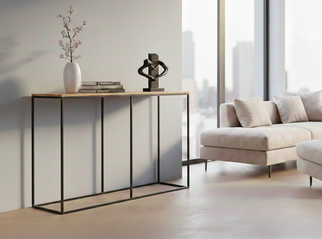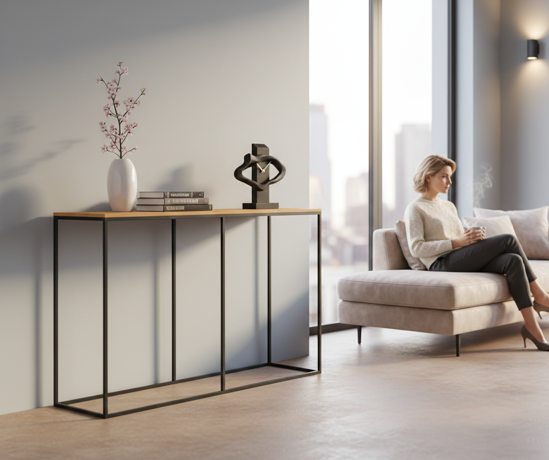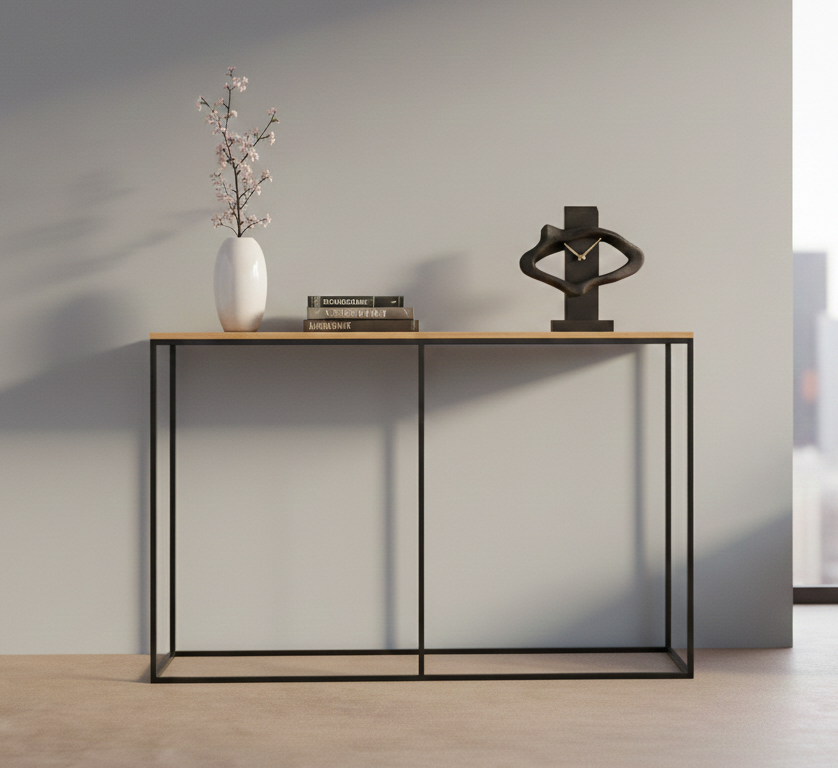 KONSOLA - REGAŁ / Stelaż Stalowy Czarny / Gatunek Drewna DĄB model SKD-386 produkowana w rozmiarach od 100 cm do 200 cm