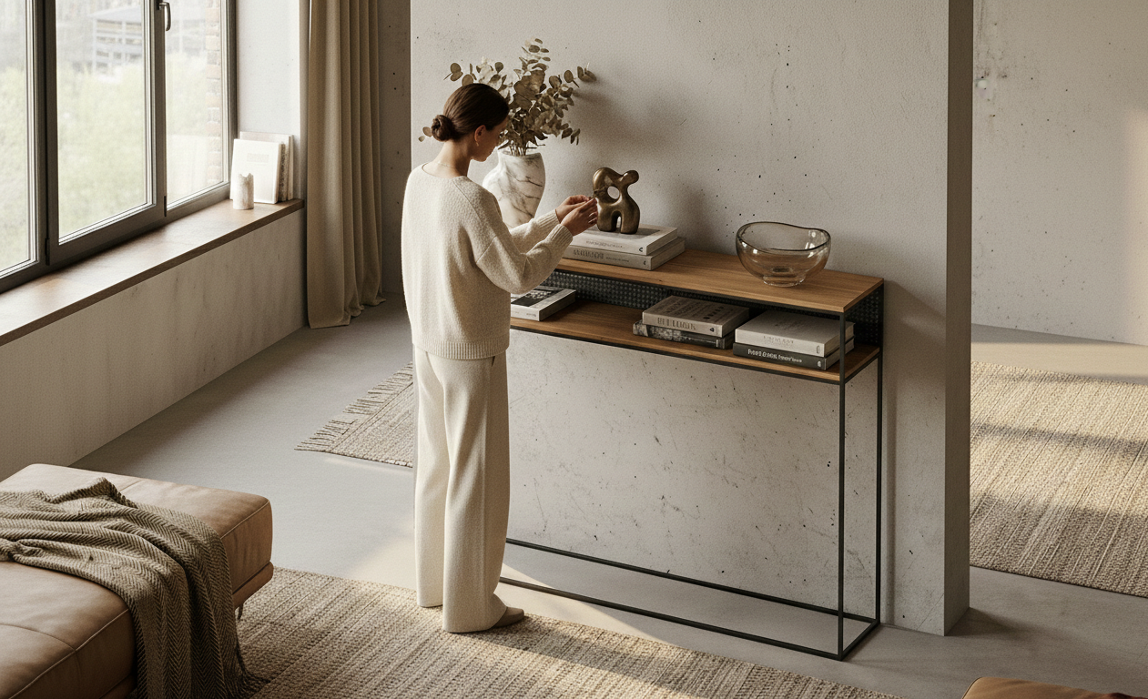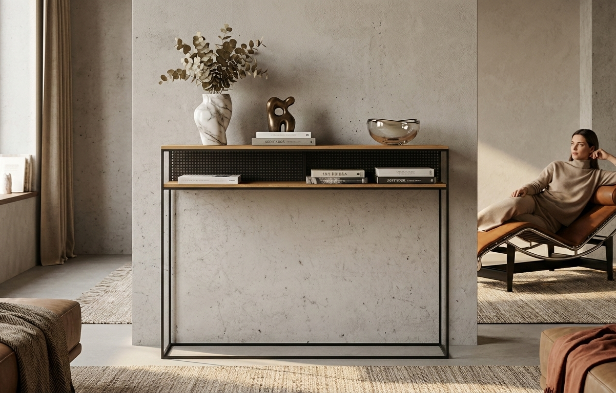 KONSOLA / Stelaż Stalowy Czarny / Gatunek Drewna DĄB model SKD-352 produkowana w rozmiarach od 50 cm do 200 cm