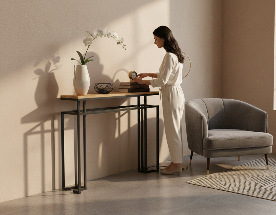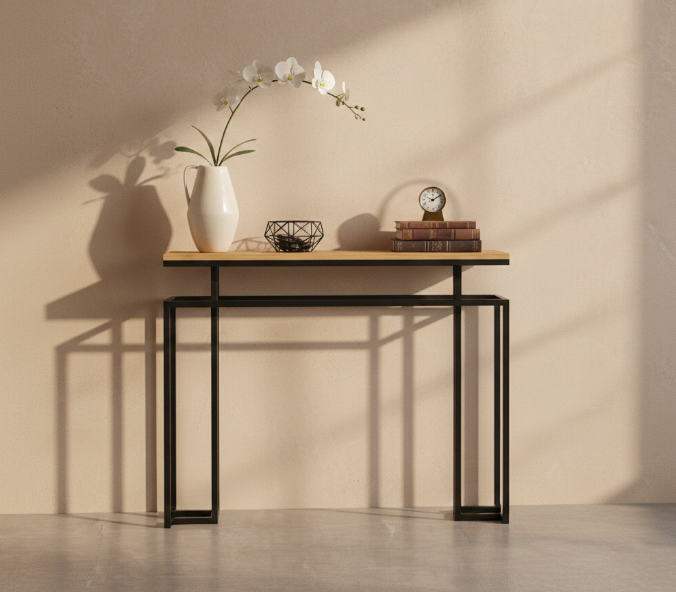 KONSOLA / Stelaż Stalowy Czarny / Gatunek Drewna DĄB model SKD-365 produkowana w rozmiarach od 50 cm do 200 cm