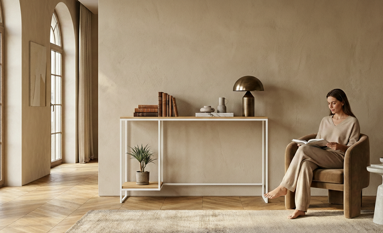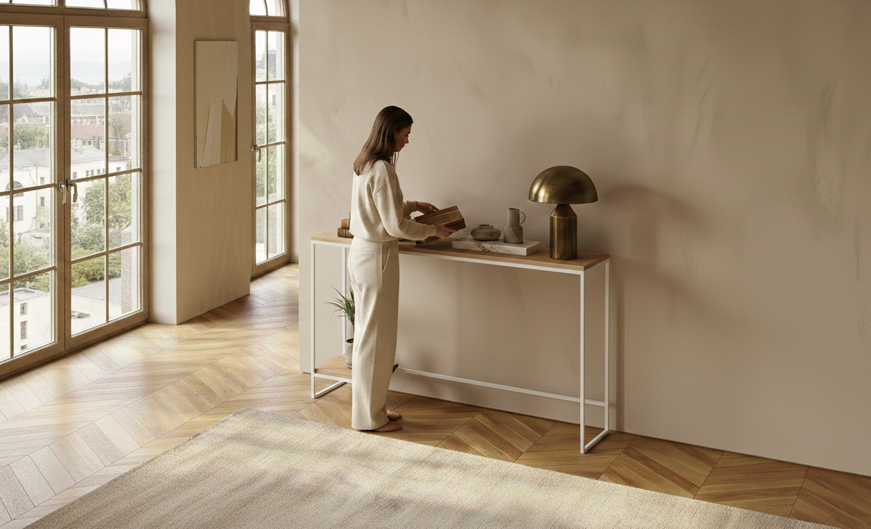 KONSOLA / Stelaż Stalowy Biały / Gatunek Drewna DĄB model SKD-372 produkowana w rozmiarach od 50 cm do 200 cm