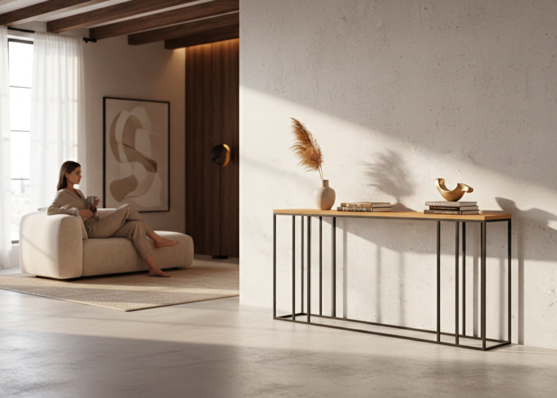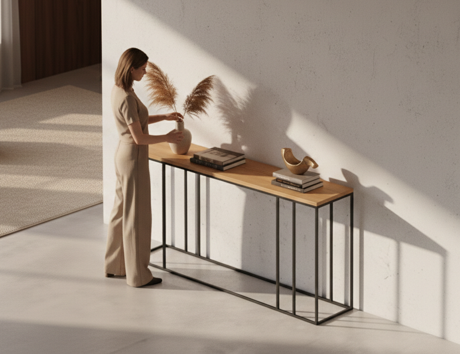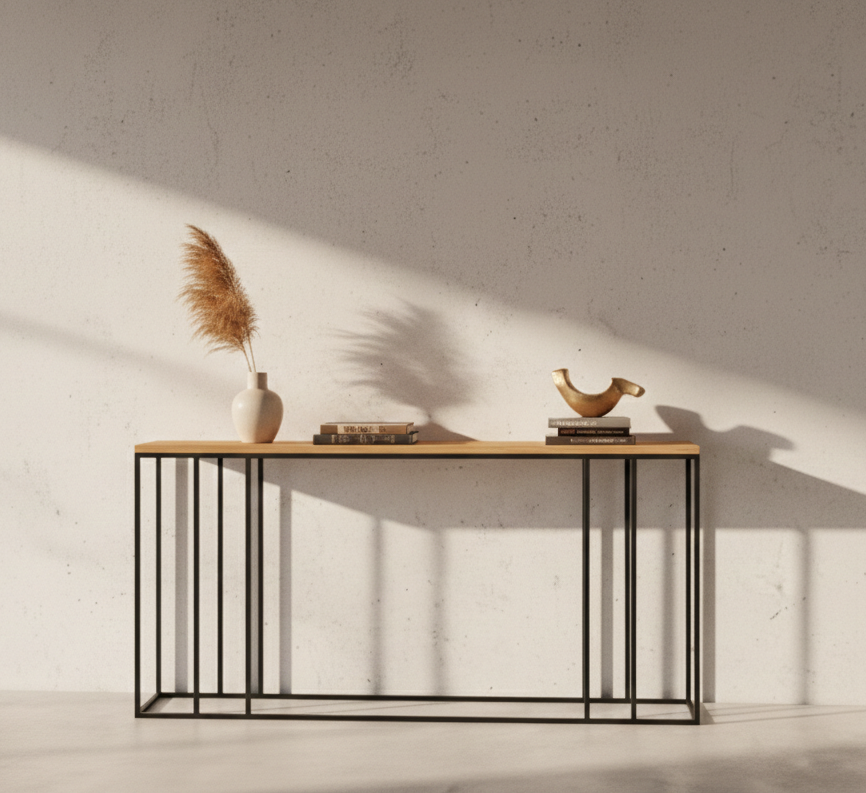 KONSOLA / Stelaż Stalowy Czarny / Gatunek Drewna DĄB model SKD-338 produkowana w rozmiarach od 50 cm do 200 cm