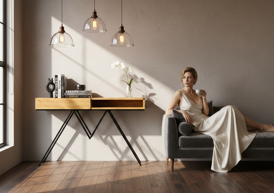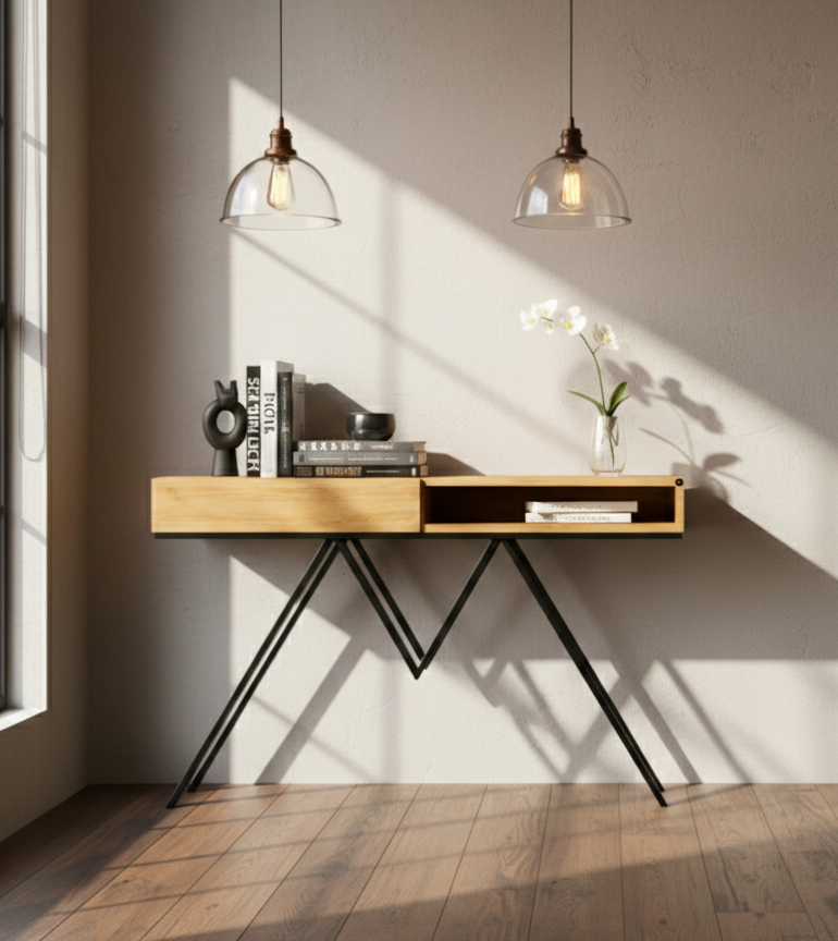 KONSOLA / Stelaż Stalowy Czarny / Gatunek Drewna DĄB model SKD-290 produkowana w rozmiarach od 50 cm do 200 cm