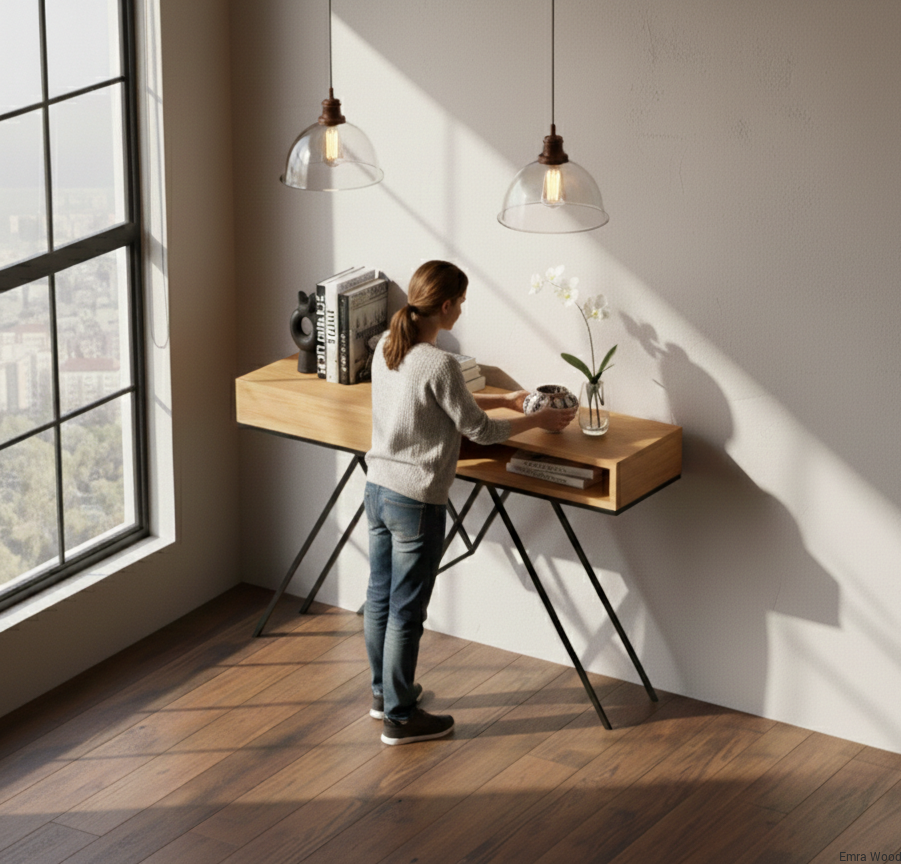 KONSOLA / Stelaż Stalowy Czarny / Gatunek Drewna DĄB model SKD-290 produkowana w rozmiarach od 50 cm do 200 cm