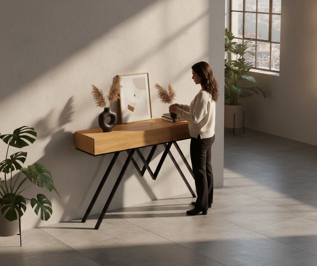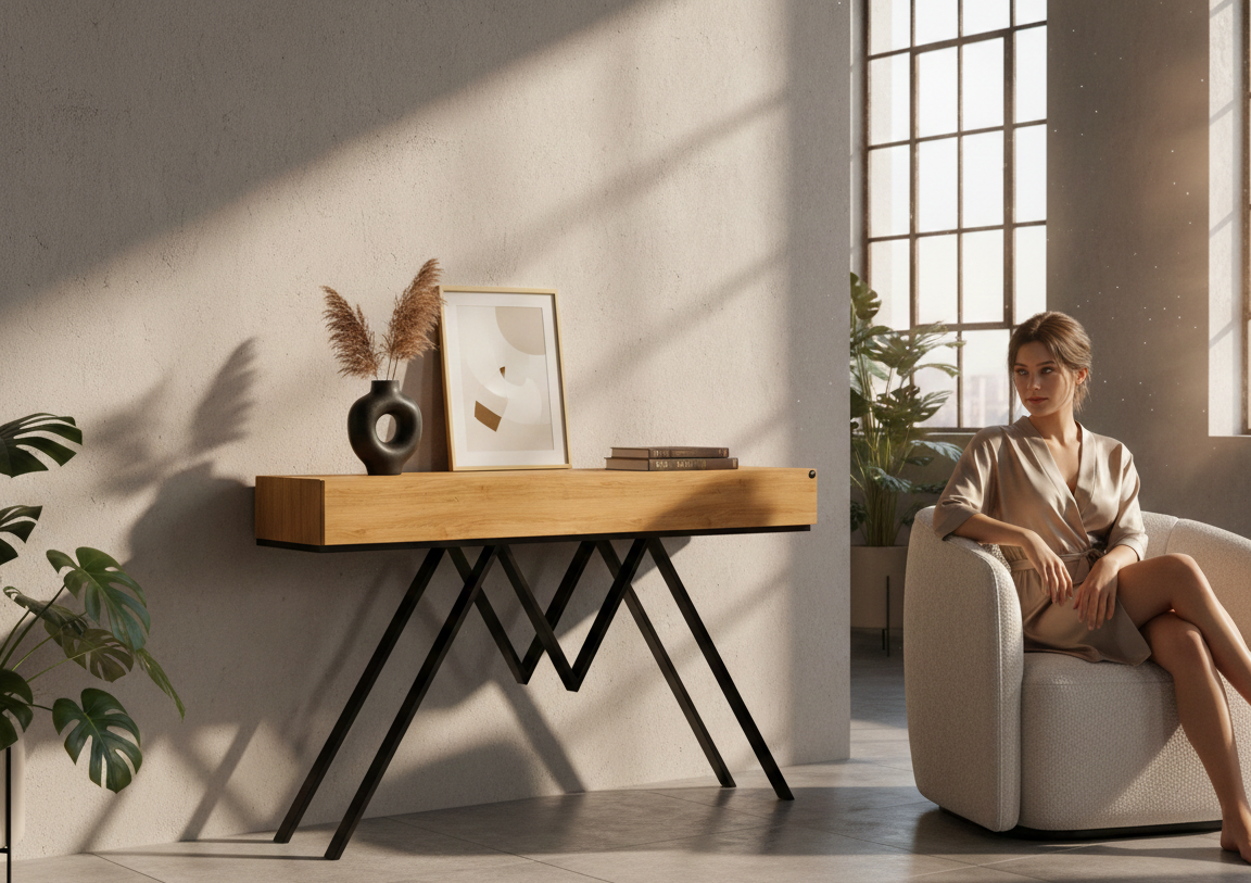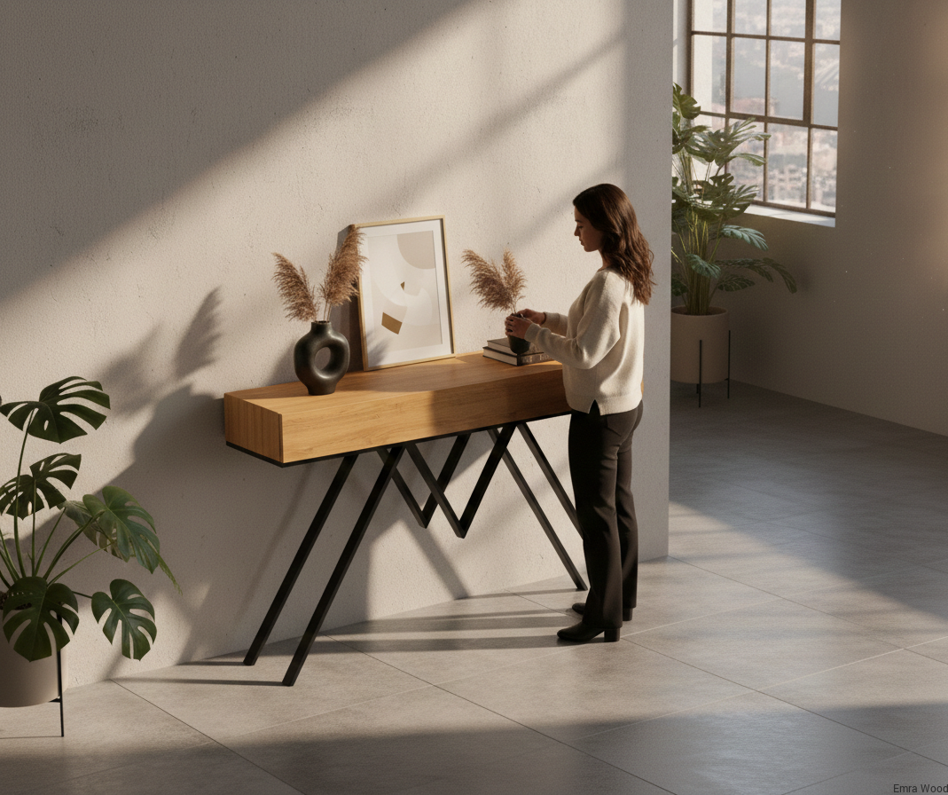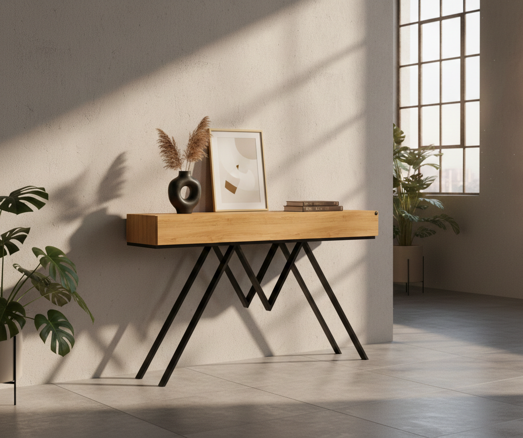 KONSOLA / Stelaż Stalowy Czarny / Gatunek Drewna DĄB model SKD-292 produkowana w rozmiarach od 50 cm do 200 cm