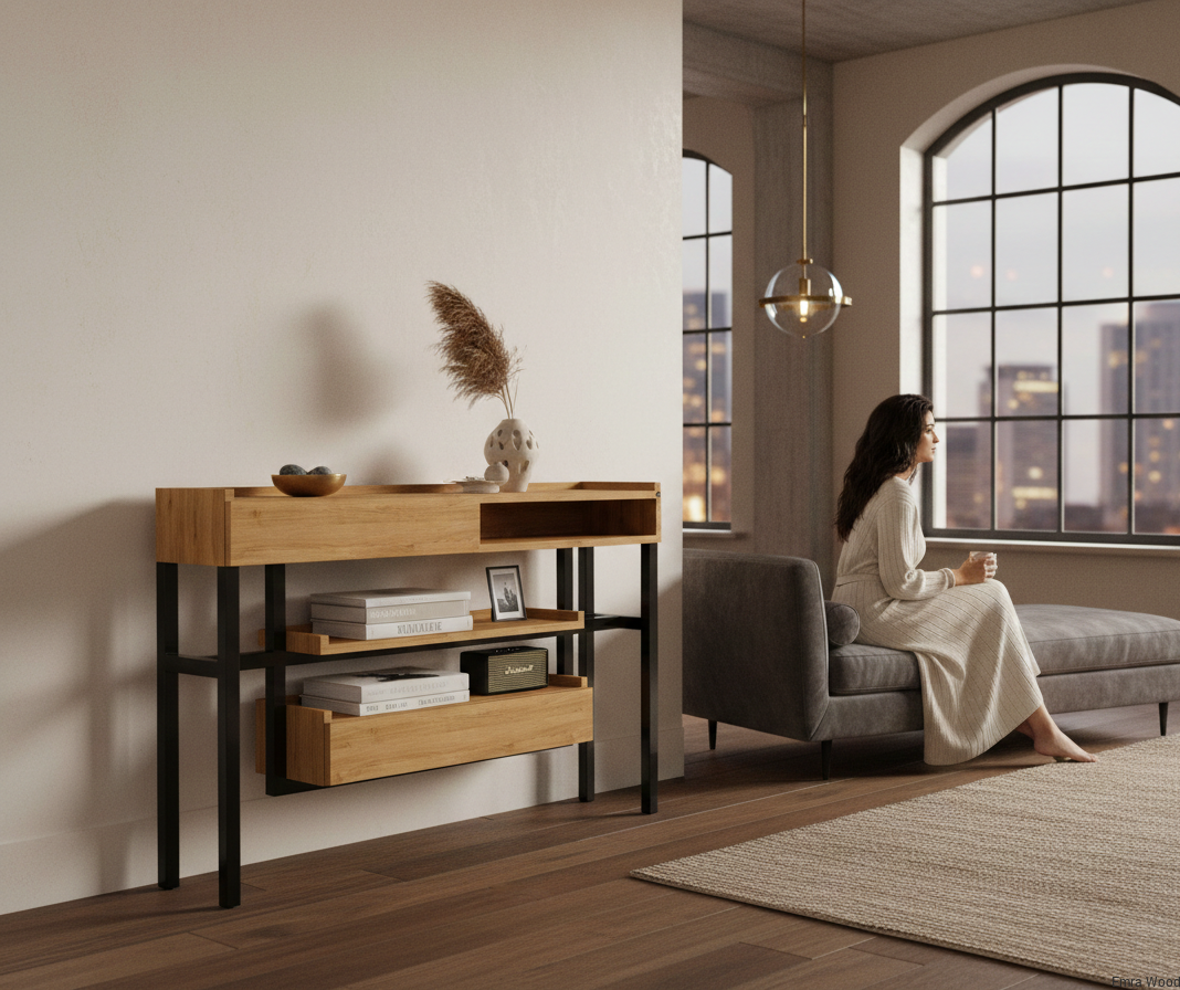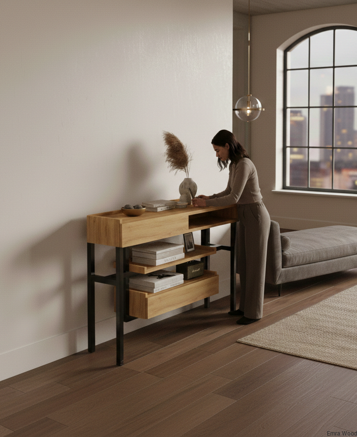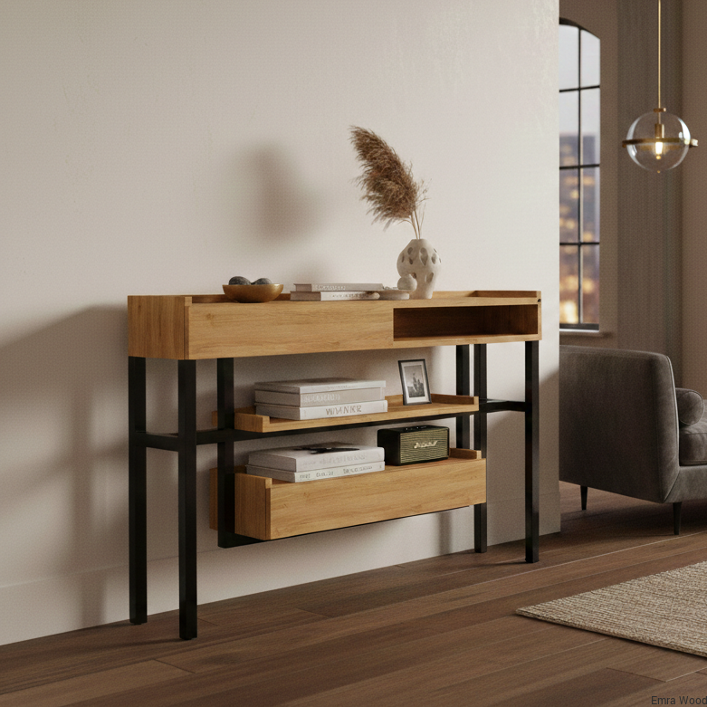 KONSOLA / Stelaż Stalowy Czarny / Gatunek Drewna DĄB model SKD-296 produkowana w rozmiarach od 50 cm do 200 cm