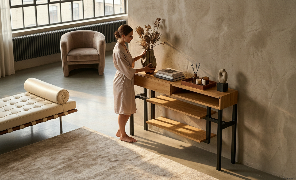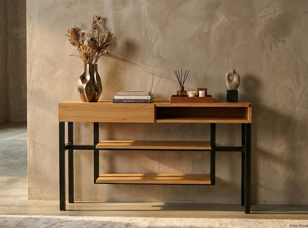 KONSOLA / Stelaż Stalowy Czarny / Gatunek Drewna DĄB model SKD-303 produkowana w rozmiarach od 50 cm do 200 cm