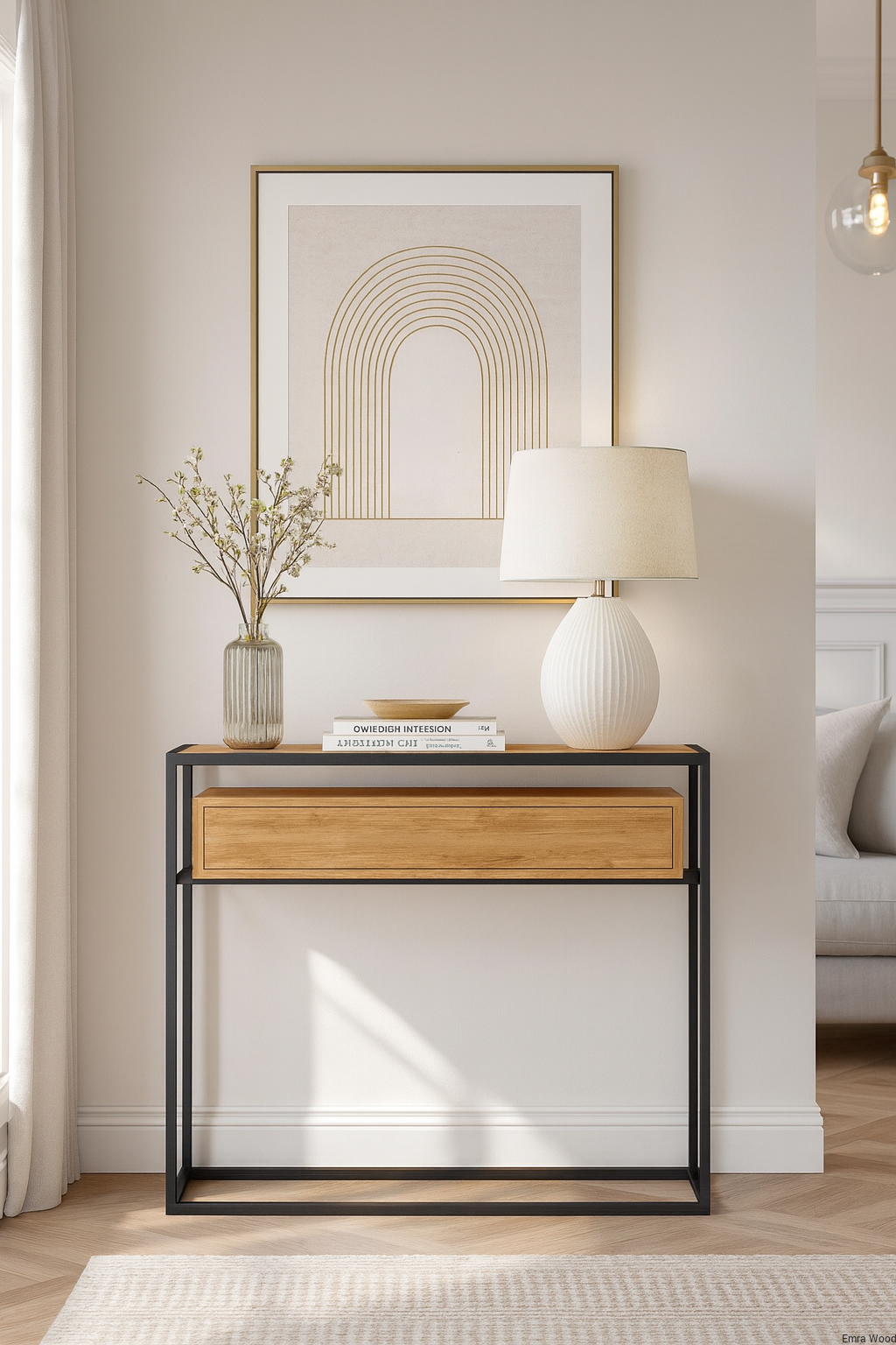 KONSOLA / Stelaż Stalowy Czarny / Gatunek Drewna DĄB model SKD-337 produkowana w rozmiarach od 50 cm do 200 cm