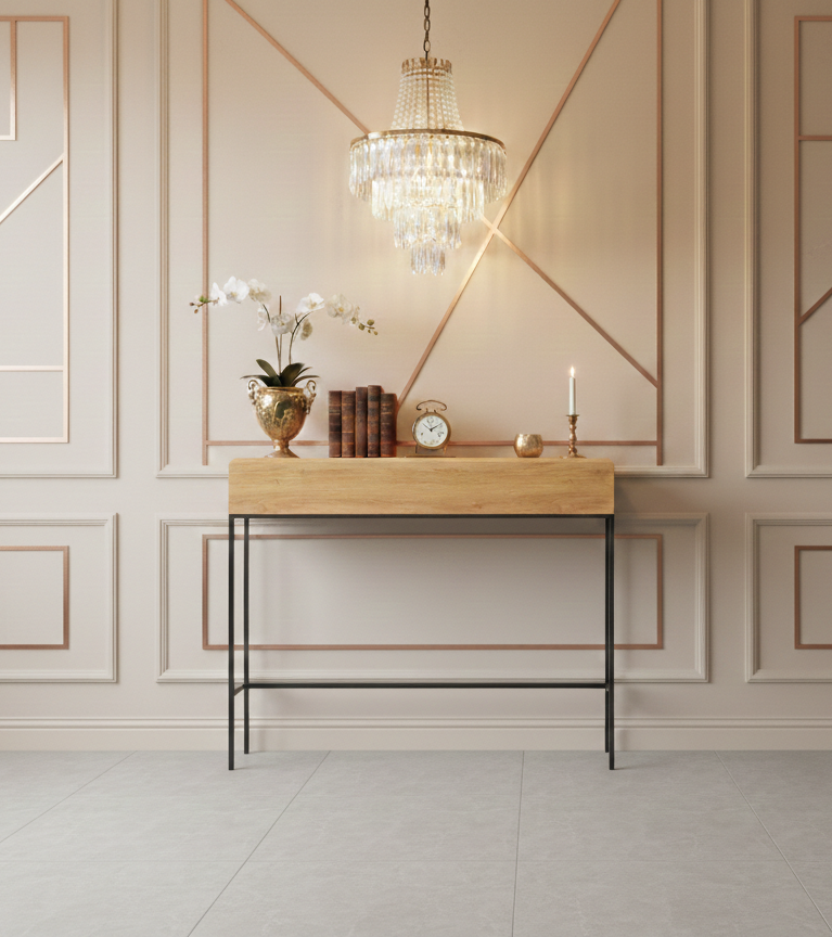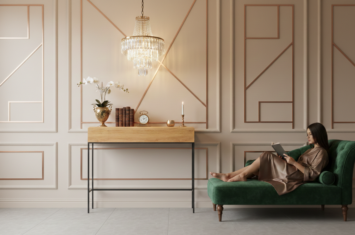 KONSOLA / Stelaż Stalowy Czarny / Gatunek Drewna DĄB model SKD-350 produkowana w rozmiarach od 50 cm do 200 cm