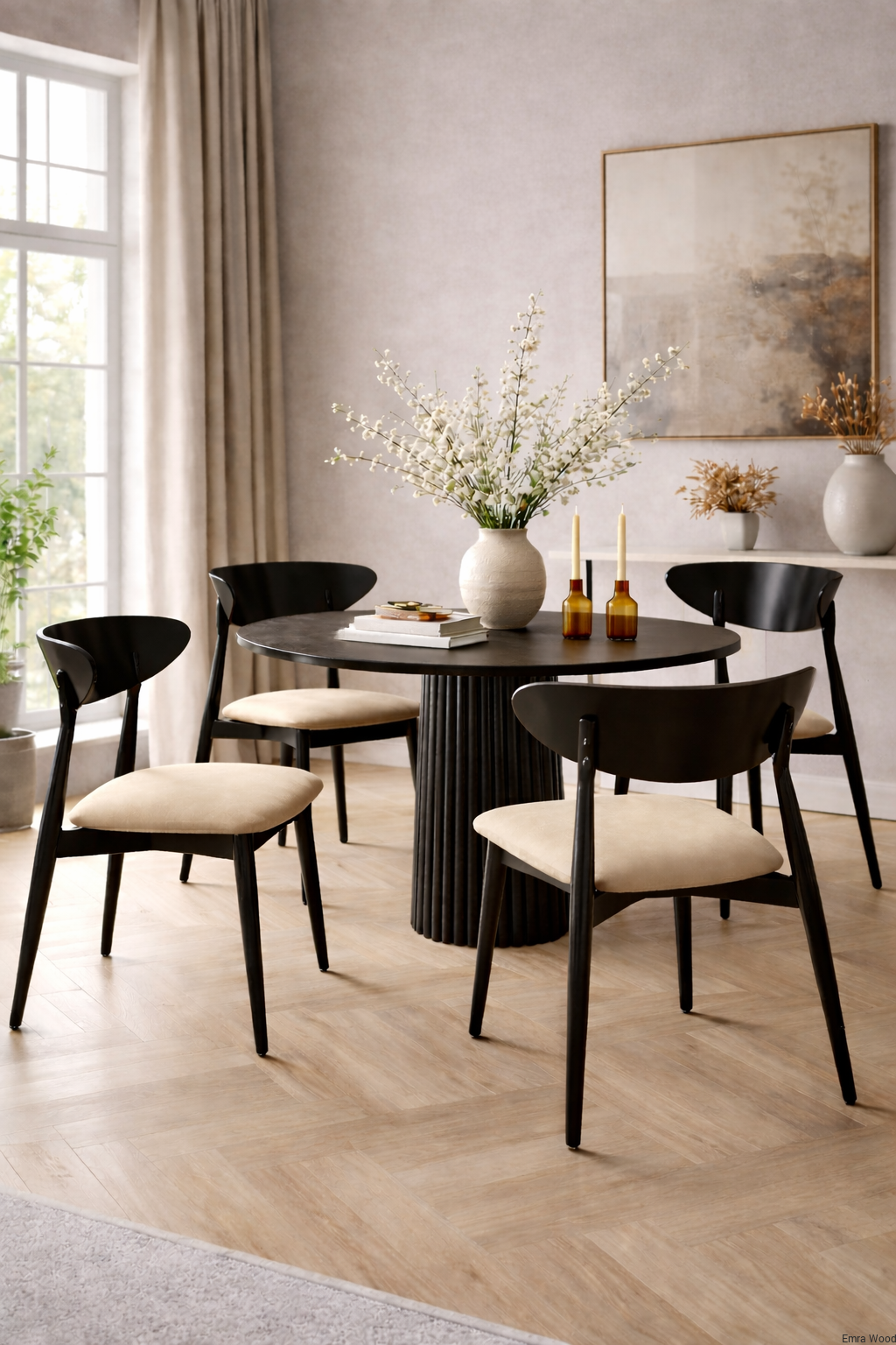 Krzesło KR-17 Kolor Beżowy  Kolor Drewna Czarny