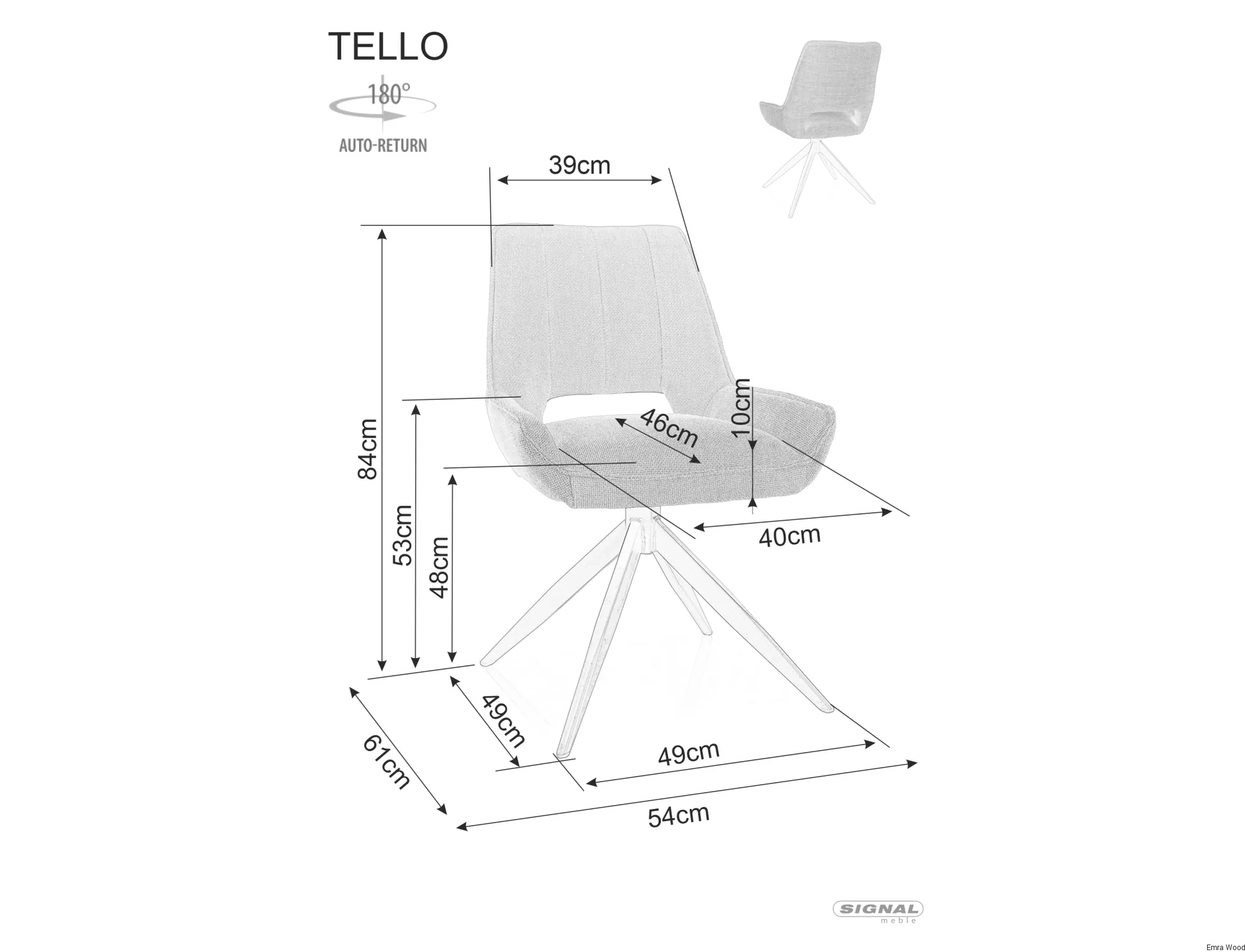 • Wysokość siedziska: 48 cm