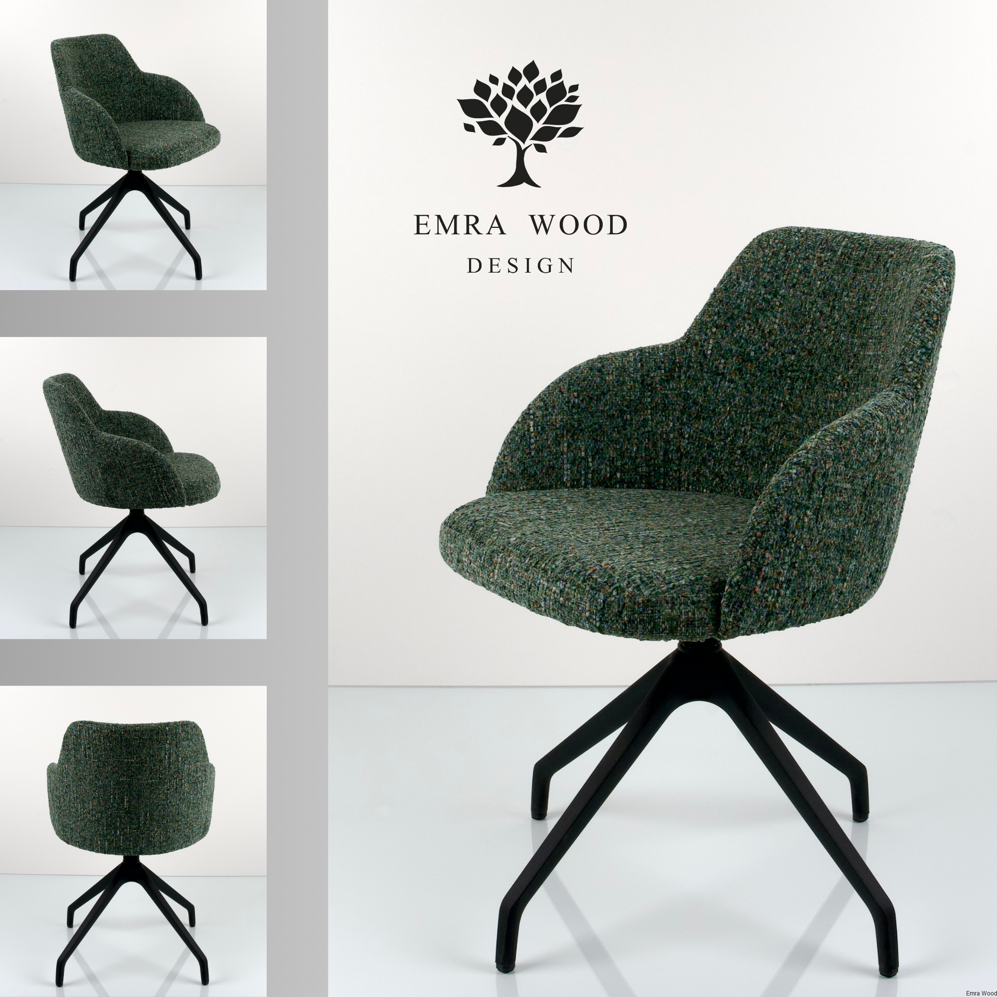Krzesło obrotowe tapicerowane KR-155 oliwkowe z podłokietnikami | Emra Wood