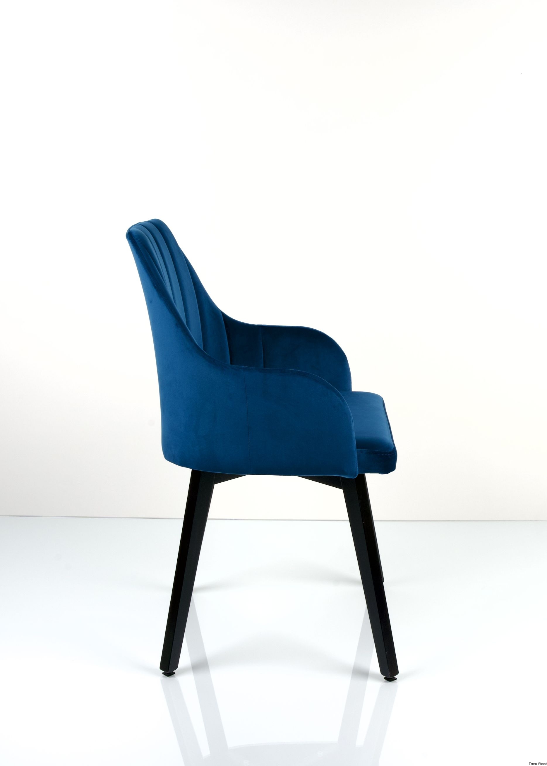• Krzesło jest tapicerowane tkaniną welur, pięknie uzupełnia się z drewnianymi nóżkami, dodając mu szyku i elegancji.