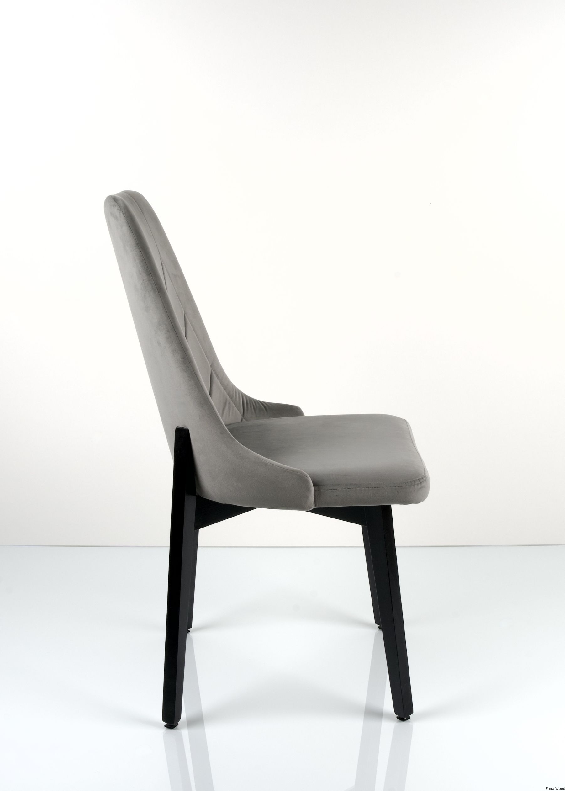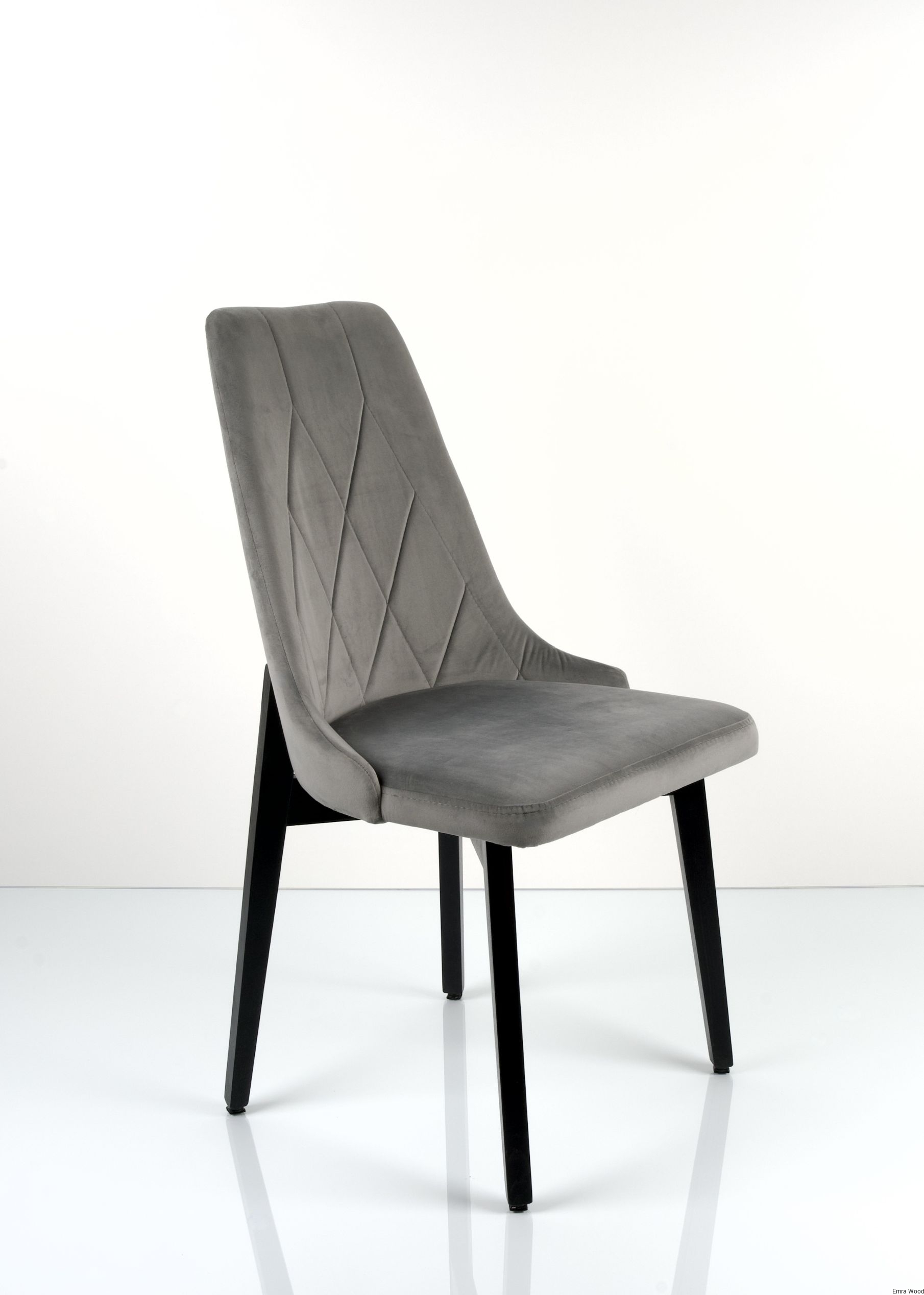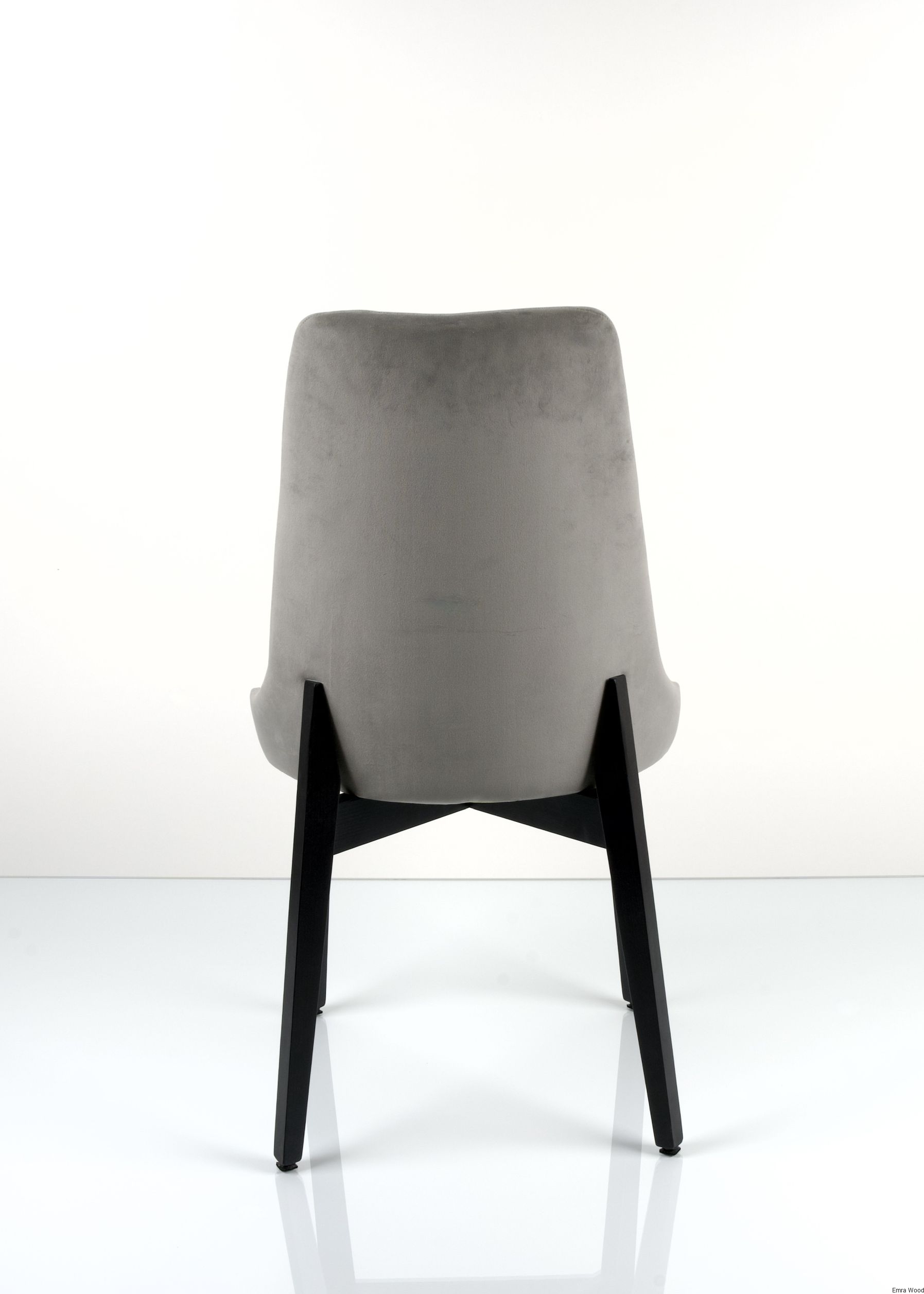 • Krzesło jest tapicerowane tkaniną welur, pięknie uzupełnia się z drewnianymi nóżkami, dodając mu szyku i elegancji.
