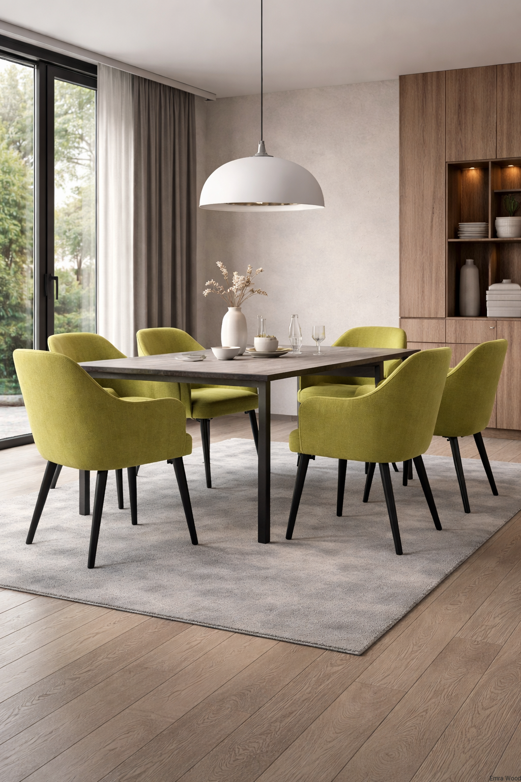 krzesło tapicerowane nowoczesne, krzesło z podłokietnikami do jadalni, krzesło welurowe, krzesło do salonu, krzesło do kuchni eleganckie, meble Emra Wood Design, designerskie krzesła z tkaniną premium, nowoczesne krzesło z komfortowym siedziskiem