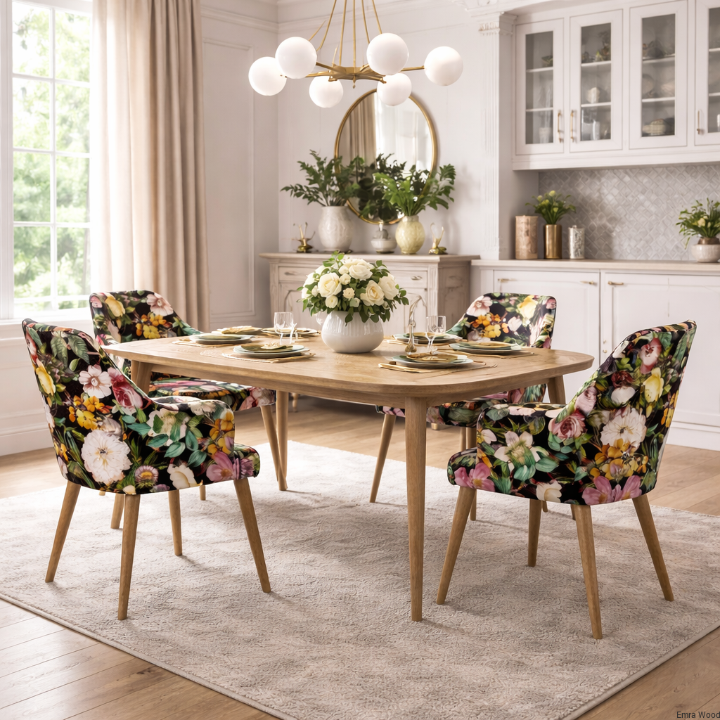 krzesło tapicerowane nowoczesne, krzesło z podłokietnikami do jadalni, krzesło welurowe, krzesło do salonu, krzesło do kuchni eleganckie, meble Emra Wood Design, designerskie krzesła z tkaniną premium, nowoczesne krzesło z komfortowym siedziskiem
