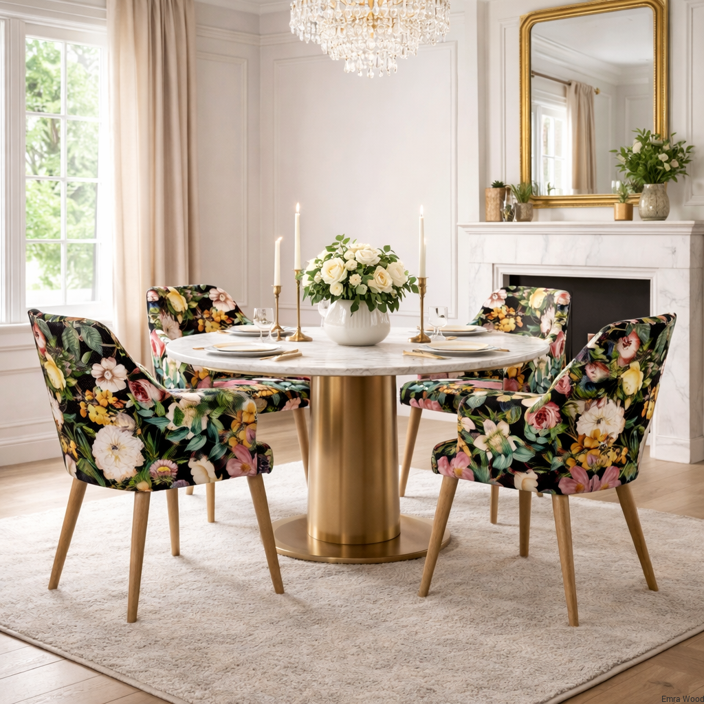 Strona główna » Jadalnia i Kuchnia » Krzesła » Krzesło tapicerowane DELUXE KR-9 Tkanina Kwiaty Mix Czerń