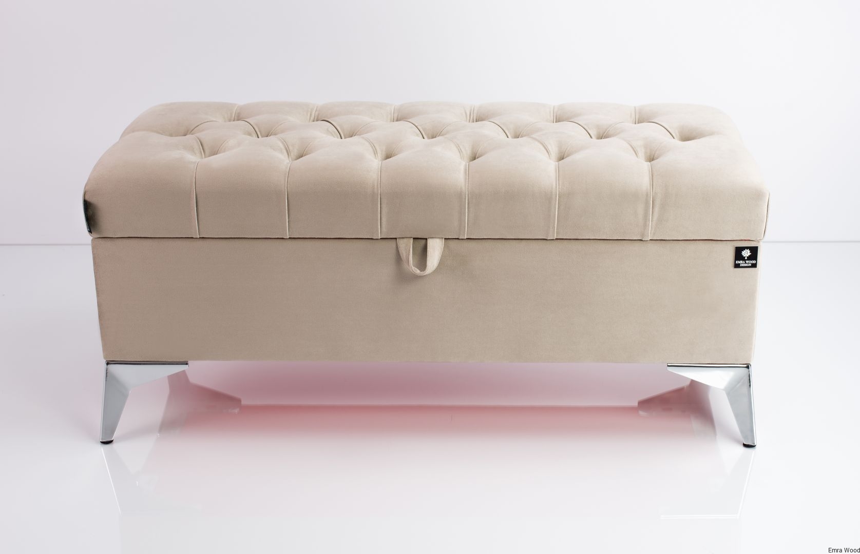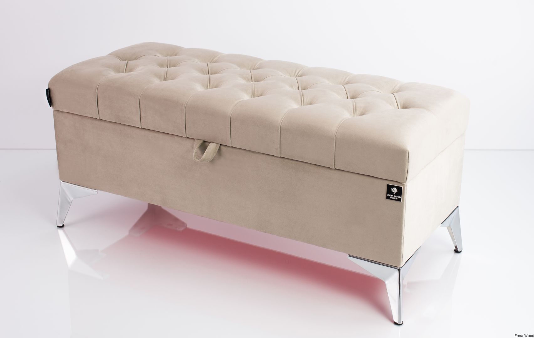 KUFER PIKOWANY CHESTERFIELD WELUR CASABLANCA 2303 BEŻ / Nóżki Chromowe model Q-2