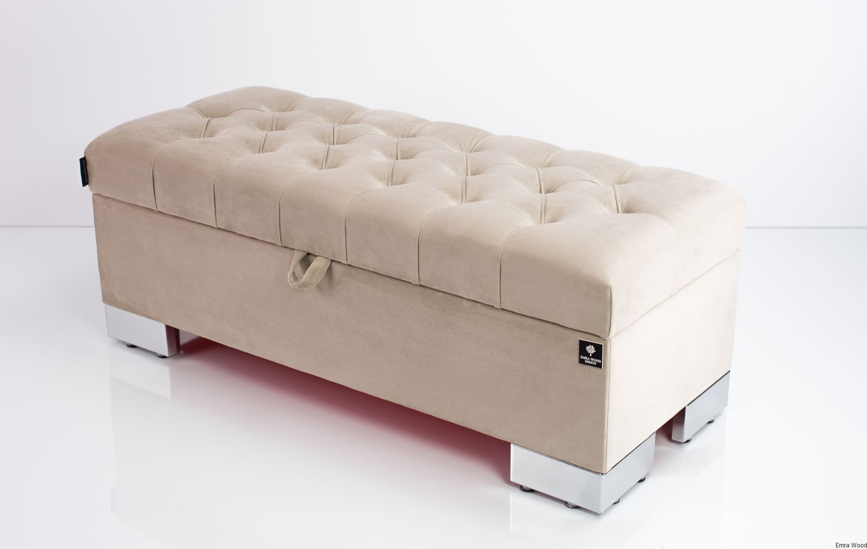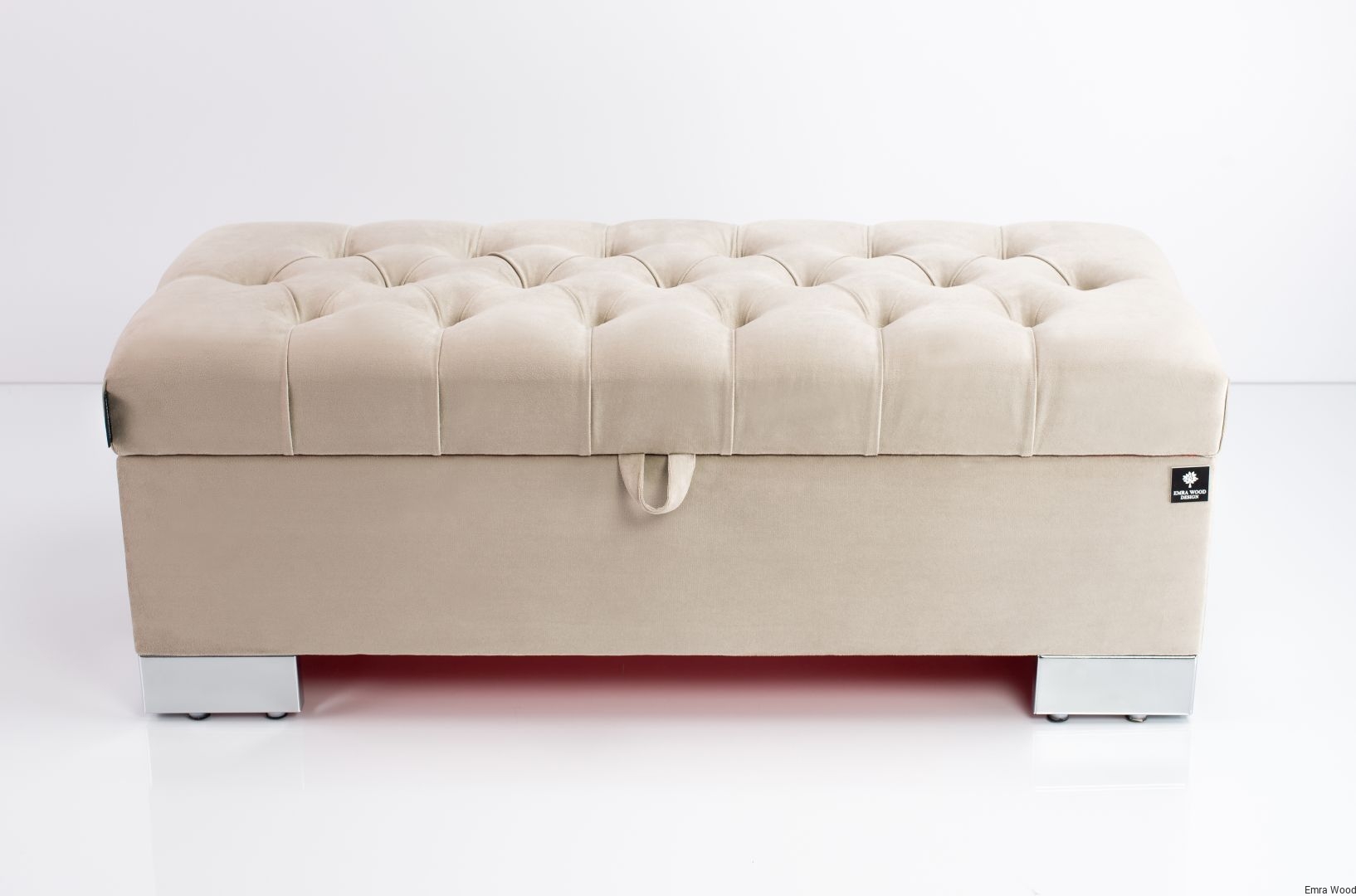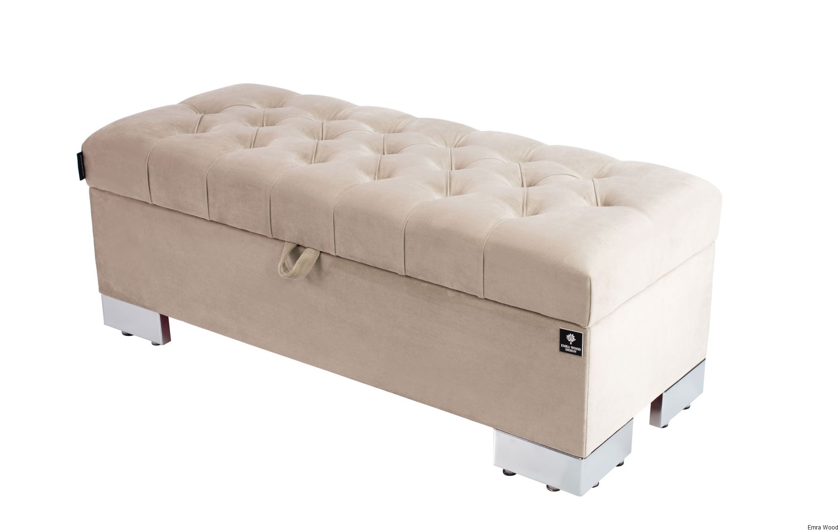 KUFER PIKOWANY CHESTERFIELD WELUR CASABLANCA 2303 BEŻ / Nóżki Chromowe model Q-4