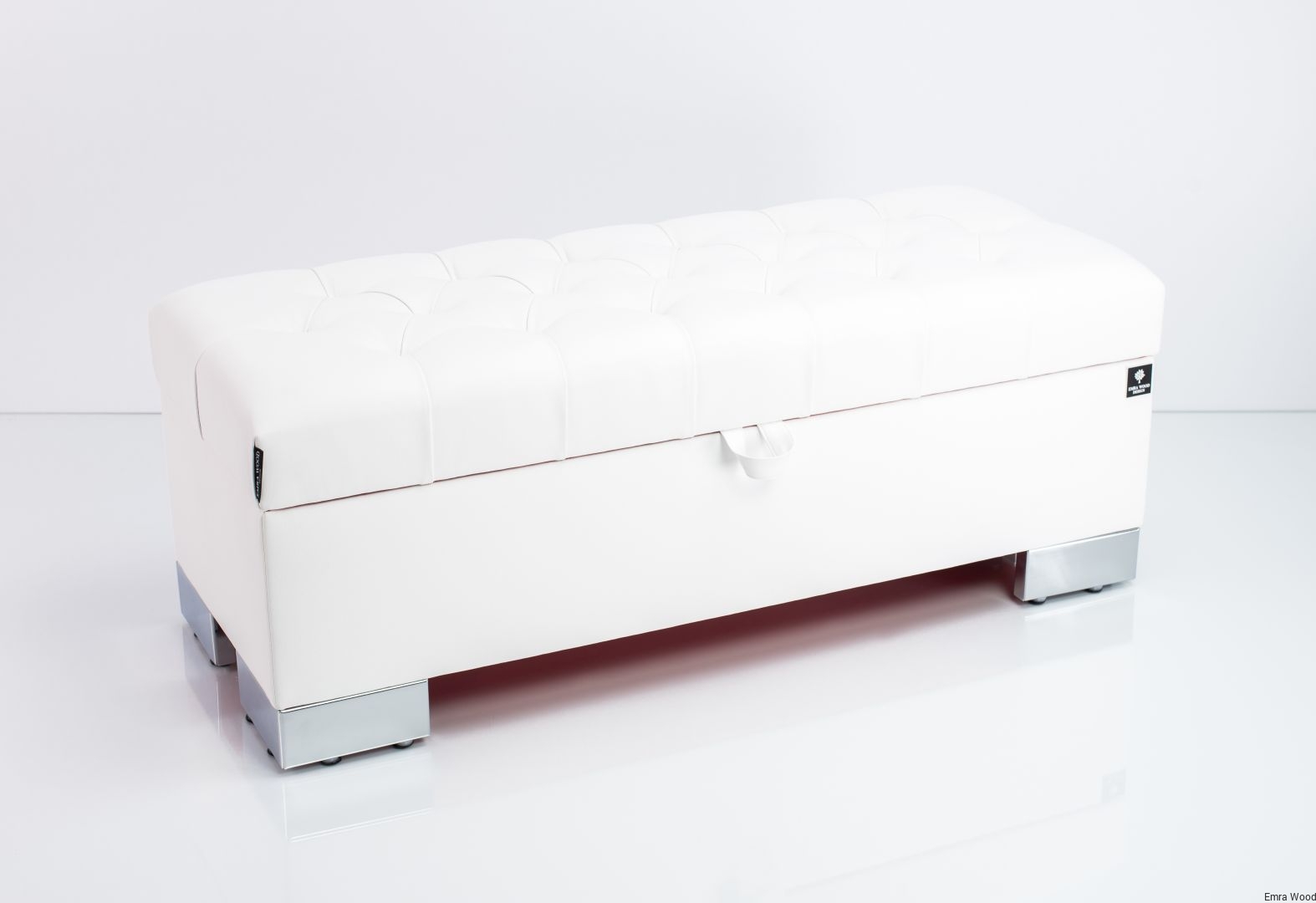 KUFER PIKOWANY CHESTERFIELD EKO-SKÓRA FLORENCJA 2521 BIAŁA / Nóżki Chromowe model Q-4