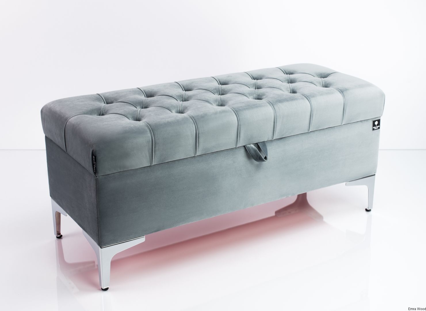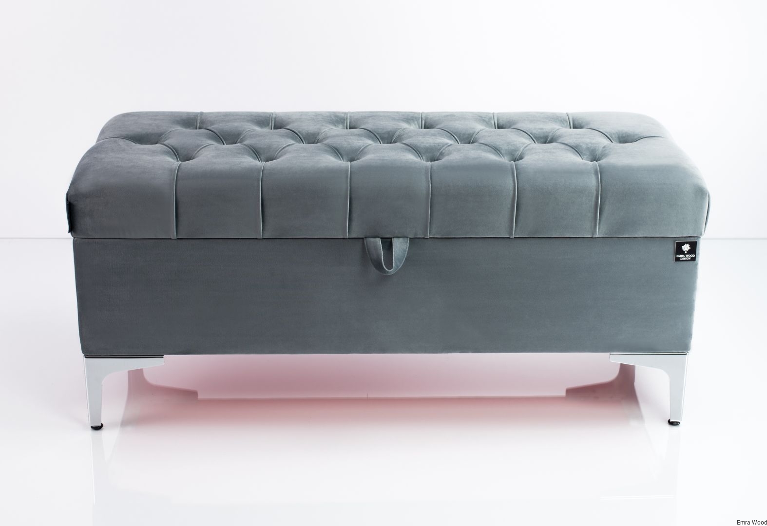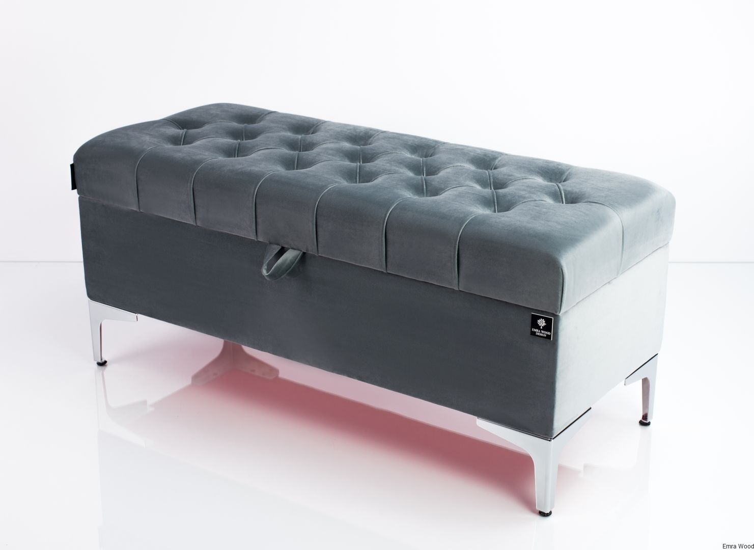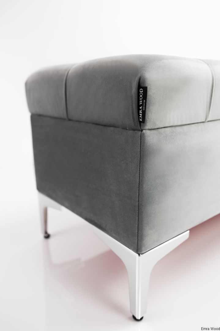 KUFER PIKOWANY CHESTERFIELD WELUR PIANO 14 POPIEL / Nóżki Chromowe model Q-1