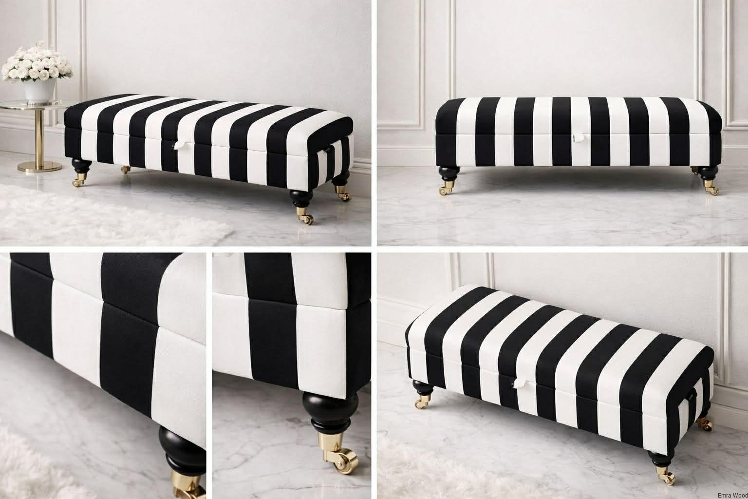 KUFER TAPICEROWANY Pasy Classic 01 Soft / Nóżki Czarne model QM-7