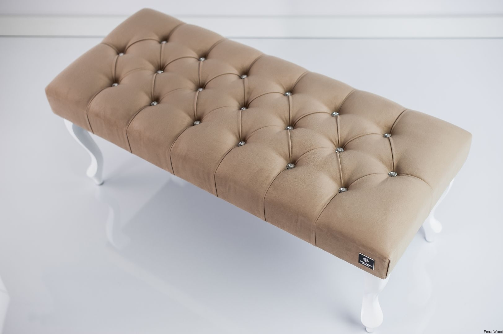 ŁAWKA Z SIEDZISKIEM PIKOWANYM Cappucino Casablanca 2304 / Guzik Tapicerowany w Kolorze Tkaniny / Nóżki Białe / model LPP-1 produkowana w rozmiarach od 50 cm do 120 cm