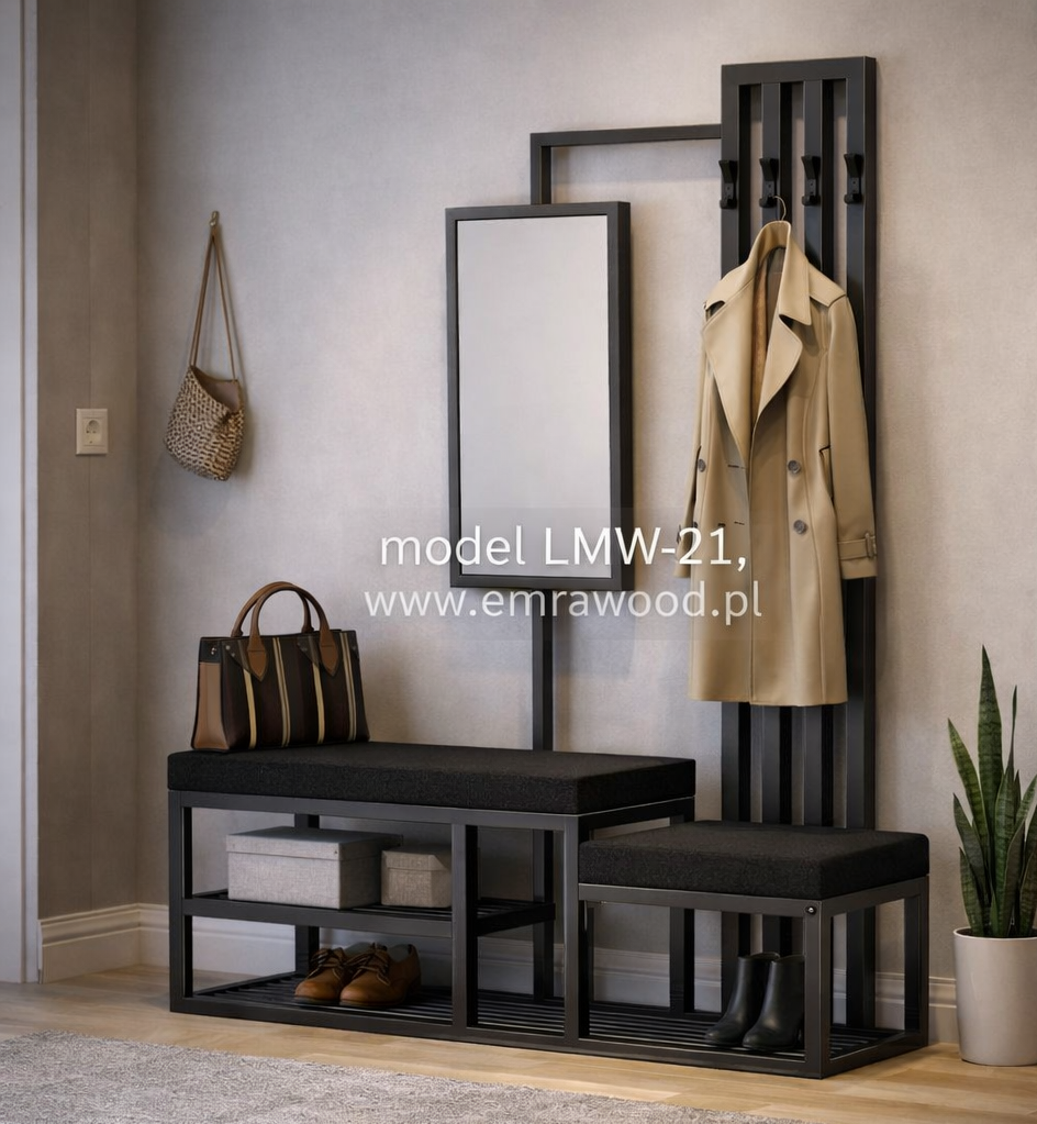 ŁAWKA METALOWA SIEDZISKO GŁADKIE kolor Czarny tkanina Casablanca 2316 / Stelaż Stal Czarny / model LMW-21 produkowana w rozmiarach od 50 cm do 200 cm