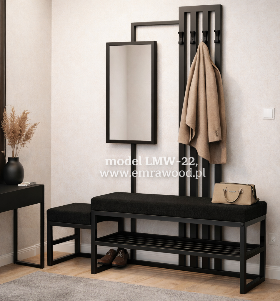 ŁAWKA METALOWA SIEDZISKO GŁADKIE kolor Czarny tkanina Casablanca 2316 / Stelaż Stal Czarny / model LMW-22 produkowana w rozmiarach od 50 cm do 200 cm