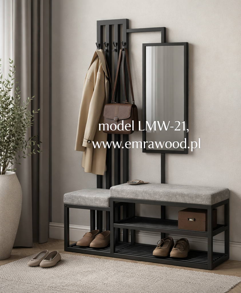 ŁAWKA METALOWA SIEDZISKO GŁADKIE kolor Popielaty / Stelaż Stal Czarny / model LMW-21 produkowana w rozmiarach od 50 cm do 200 cm