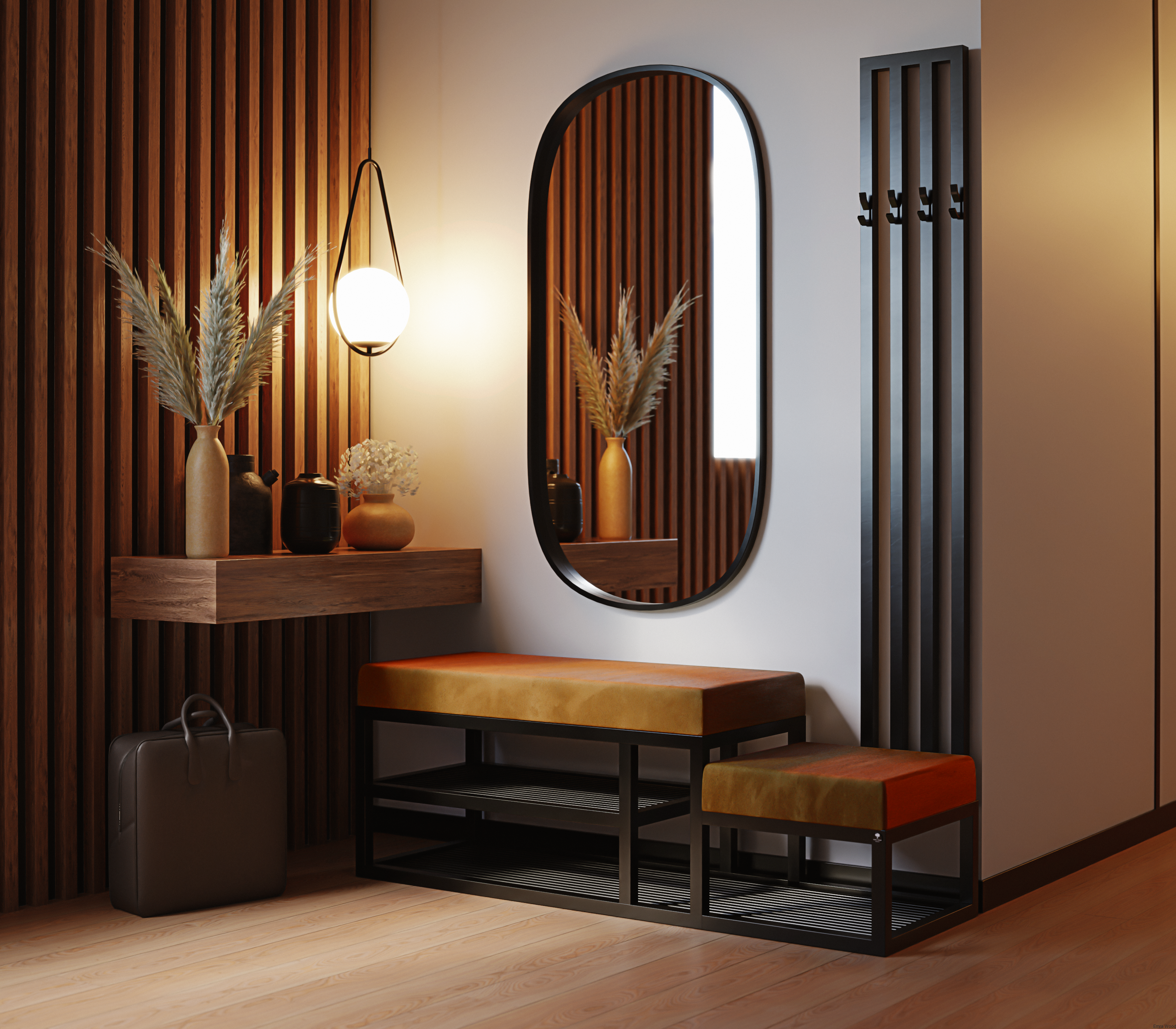 ŁAWKA METALOWA SIEDZISKO GŁADKIE kolor Pomarańczowy / Stelaż Stal Czarny / model LMW-15 produkowana w rozmiarach od 50 cm do 200 cm