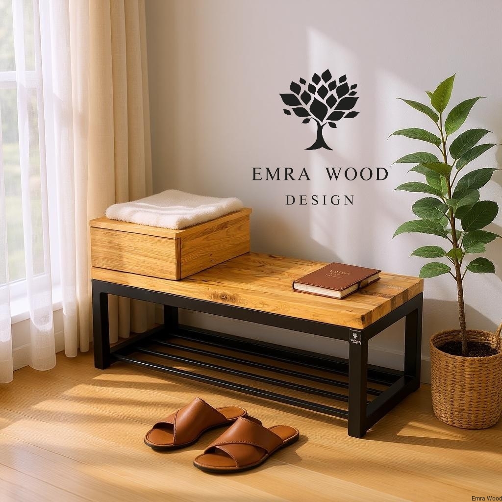 ŁAWKA METALOWA / Stelaż Stal Czarna Malowana Proszkowo / Blat Lite Drewno Dąb Naturalny Lakier / Grubość Profila 4 x 4 cm model LM-26