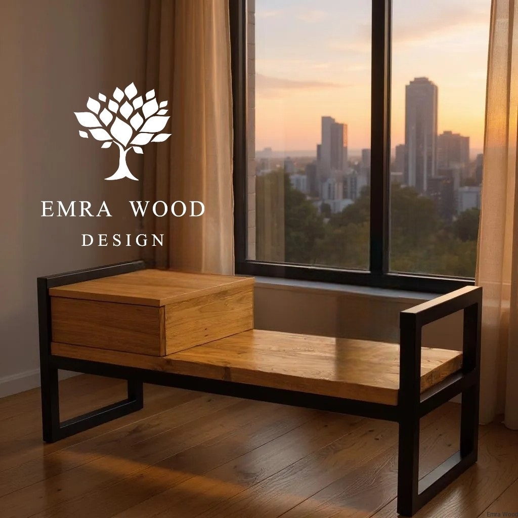 ŁAWKA METALOWA / Stelaż Stal Czarna Malowana Proszkowo / Blat Lite Drewno Dąb Naturalny Lakier / Grubość Profila 4 x 4 cm model LM-30