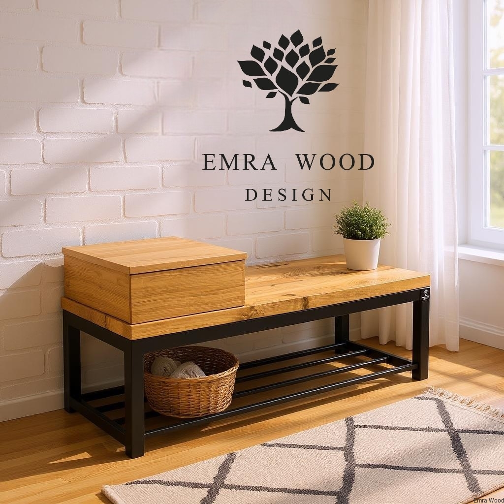 ŁAWKA METALOWA / Stelaż Stal Czarna Malowana Proszkowo / Blat Lite Drewno Dąb Naturalny Lakier / Grubość Profila 4 x 4 cm model LM-34