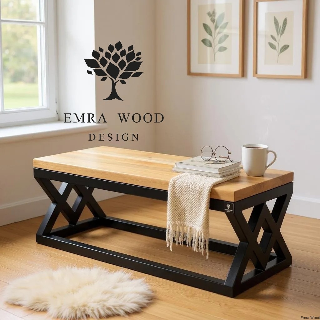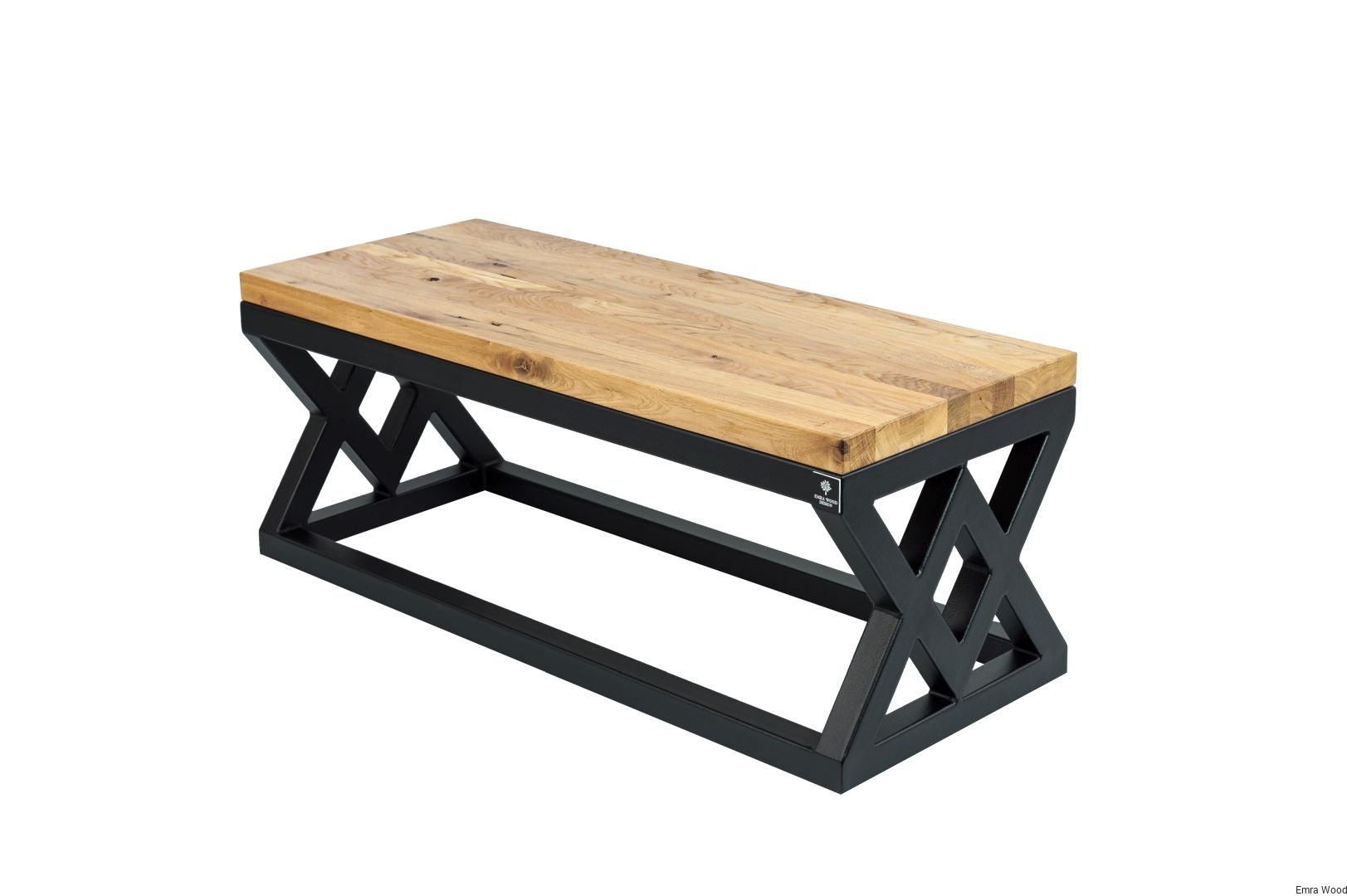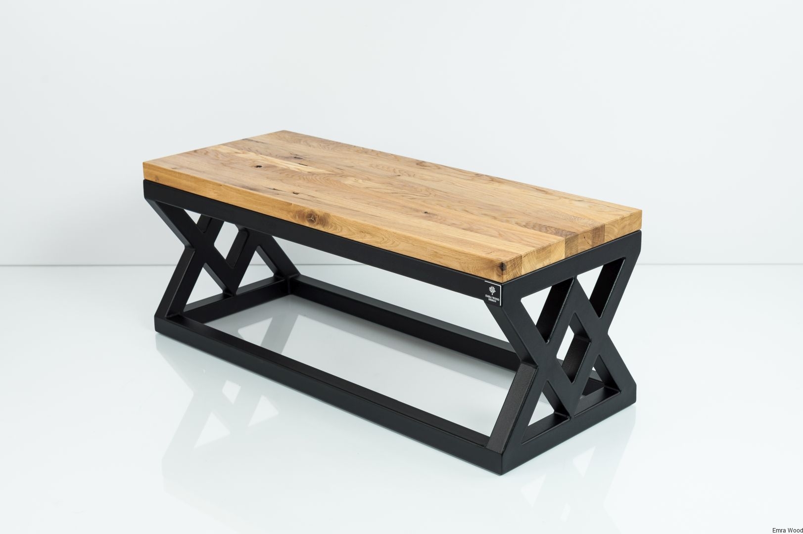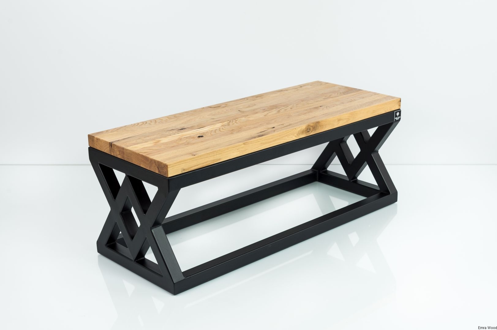 ŁAWKA METALOWA / Stelaż Stal Czarna Malowana Proszkowo / Blat Lite Drewno Dąb Naturalny Lakier / Grubość Profila 4 x 4 cm model LM-45