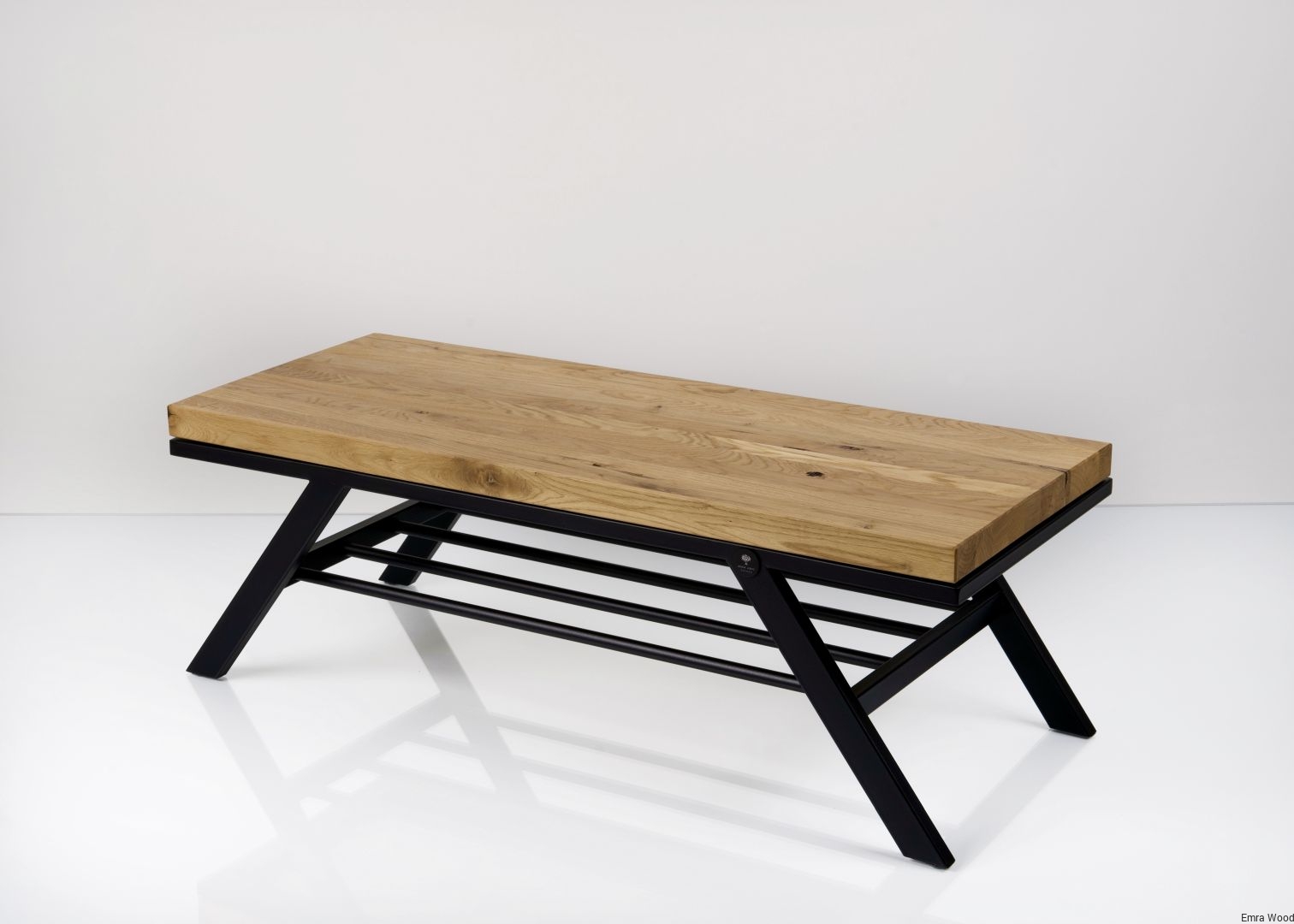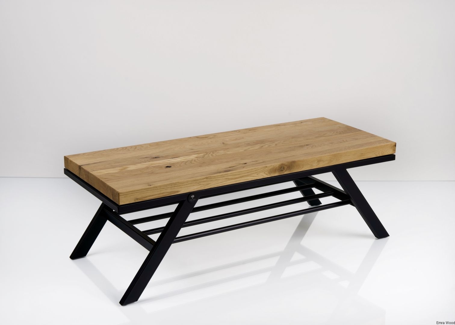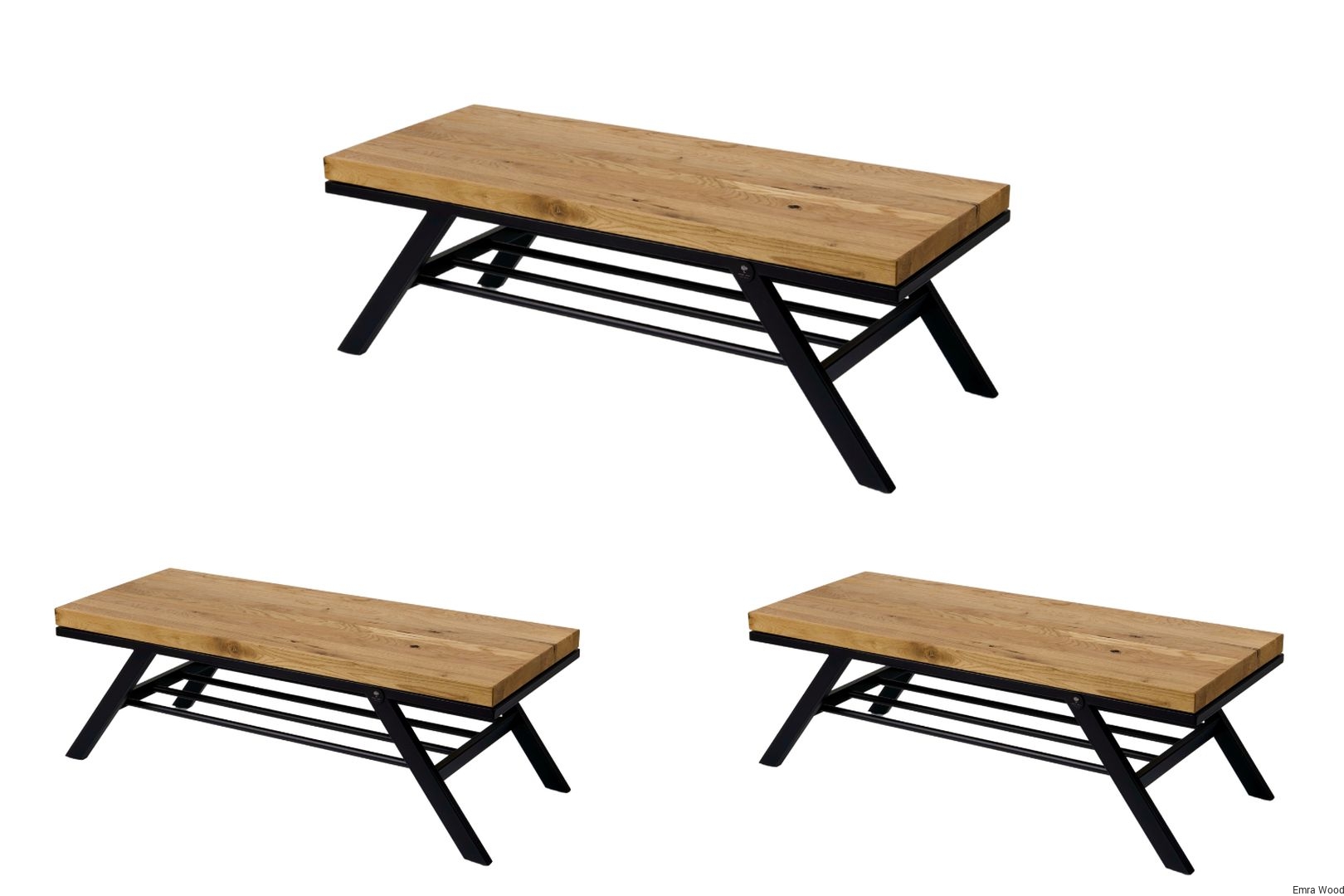 ŁAWKA METALOWA / Stelaż Stal Czarna Malowana Proszkowo / Siedzisko Drewno Lite Dąb / model LM-56 produkowana w rozmiarach od 50 cm do 200 cm