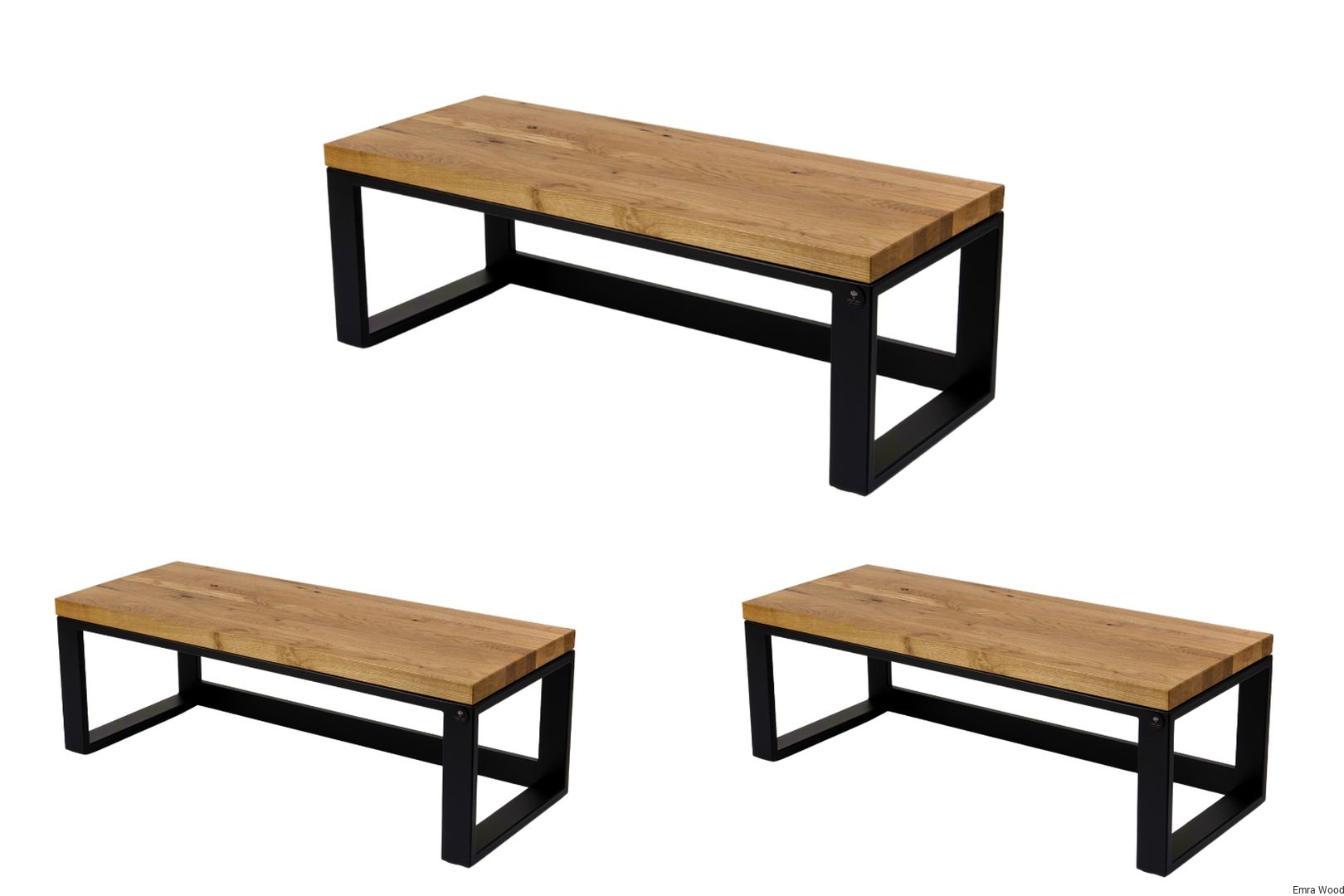 ŁAWKA METALOWA / Stelaż Stal Czarna Malowana Proszkowo / Siedzisko Drewno Lite Dąb / model LM-60 produkowana w rozmiarach od 50 cm do 200 cm