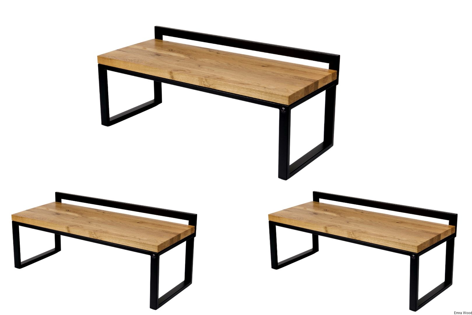 ŁAWKA METALOWA / Stelaż Stal Czarna Malowana Proszkowo / Siedzisko Drewno Lite Dąb / model LM-67 produkowana w rozmiarach od 50 cm do 200 cm