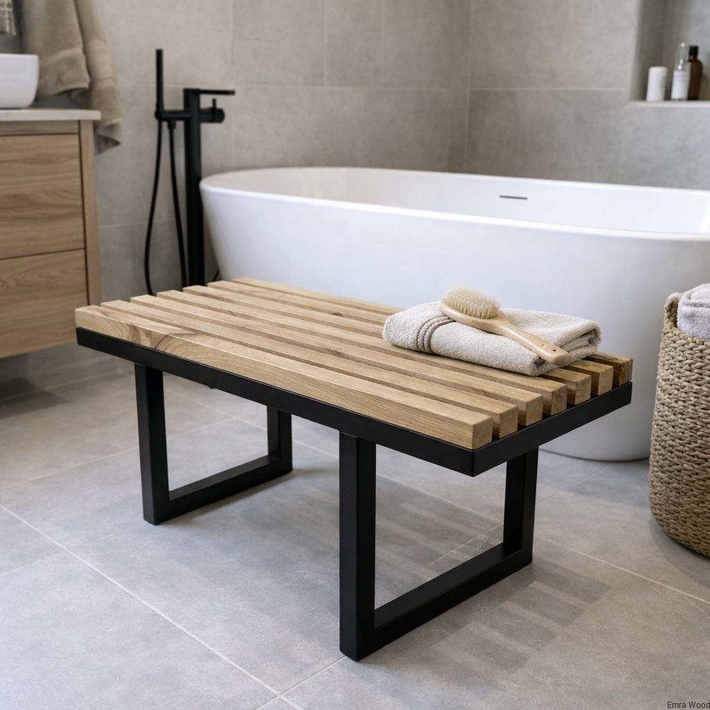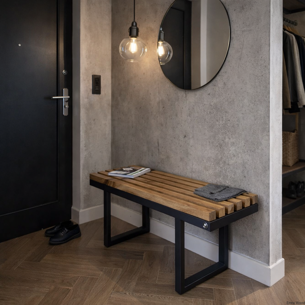 ŁAWKA METALOWA / Stelaż Stal Czarna Malowana Proszkowo / Siedzisko Drewno Lite Dąb Loft / model LPD-31 produkowana w rozmiarach od 50 cm do 200 cm