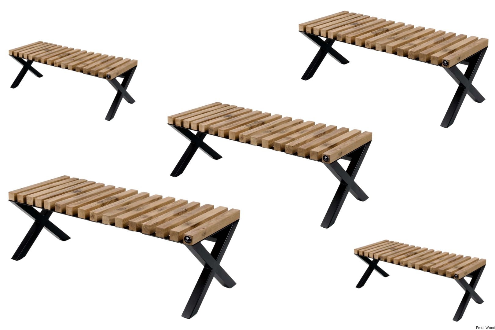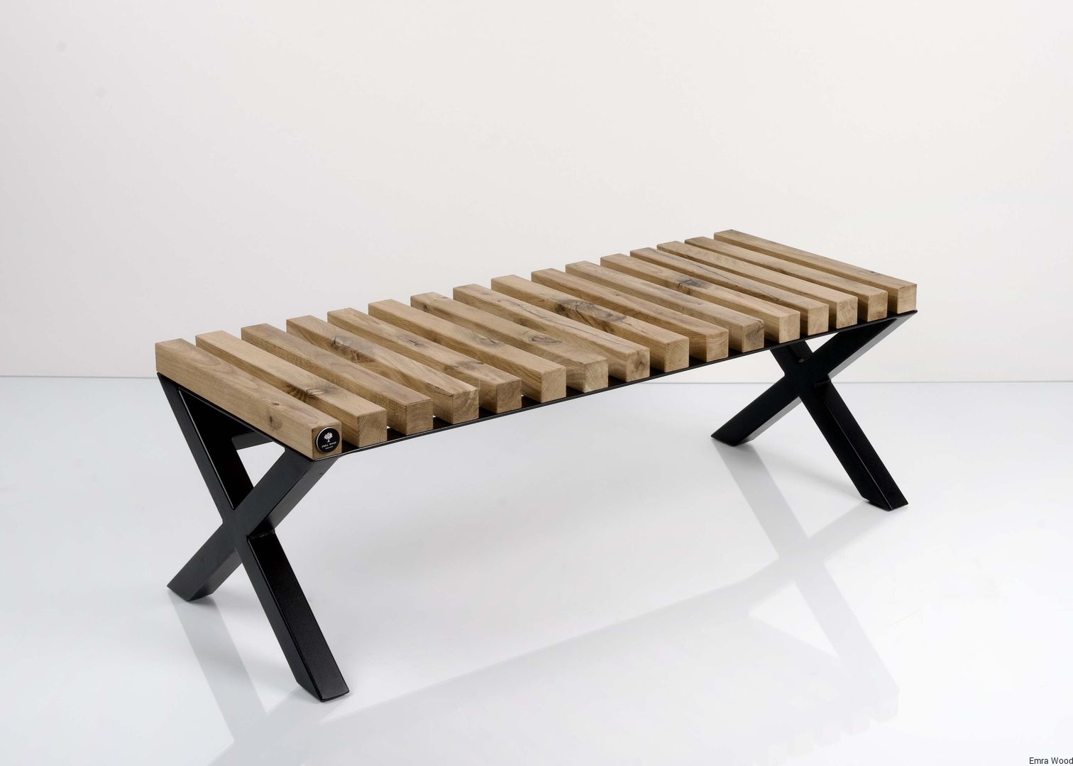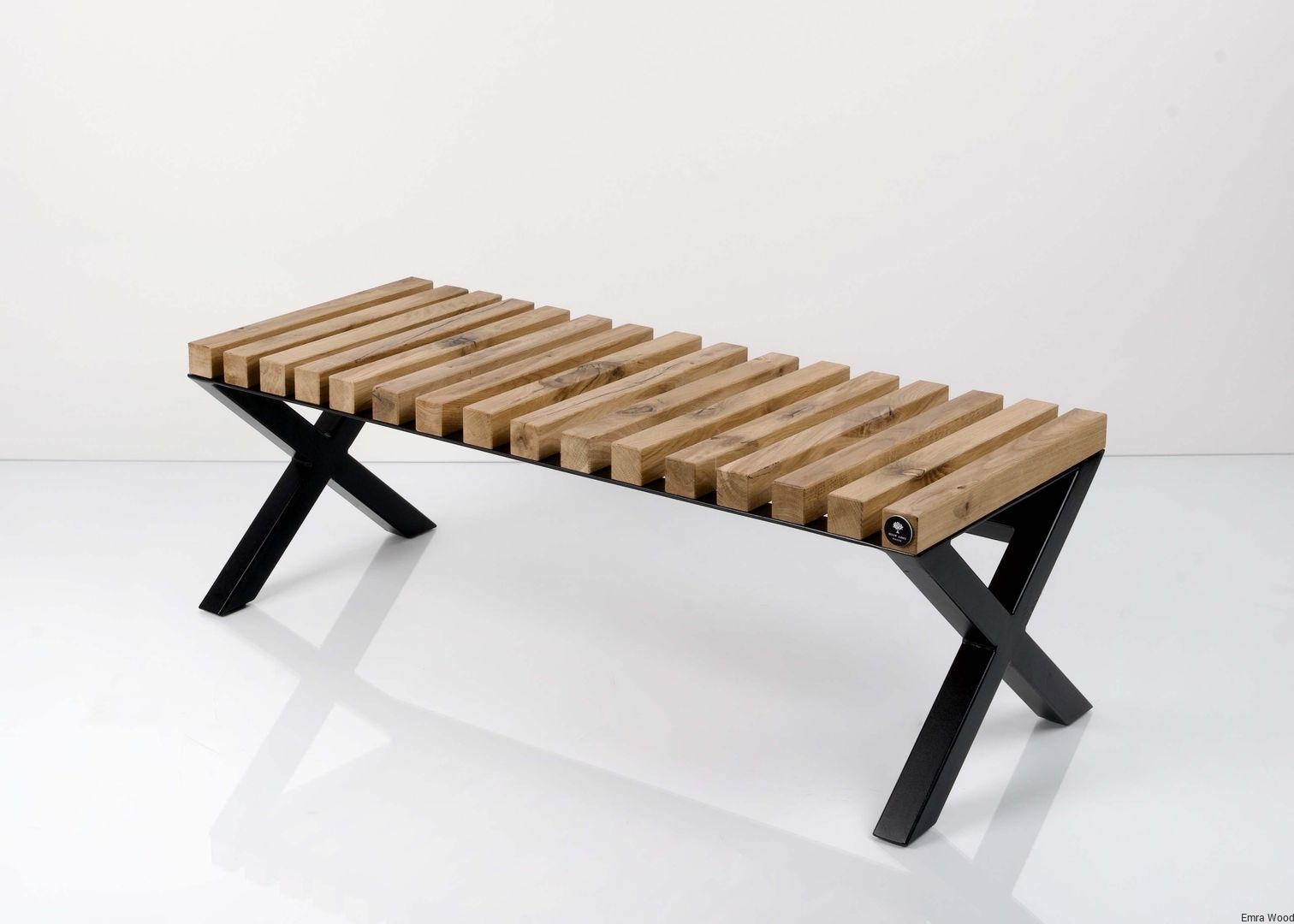 ŁAWKA METALOWA / Stelaż Stal Czarna Malowana Proszkowo / Siedzisko Drewno Lite Dąb Loft / model LPD-5