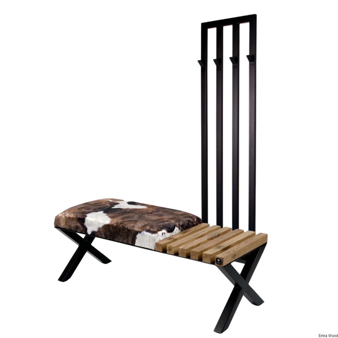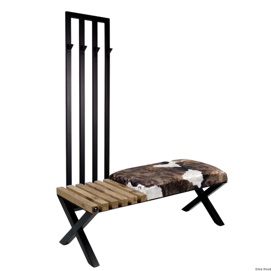 ŁAWKA METALOWA TAPICEROWANA SIEDZISKO GŁADKIE Krowa 01 / Stelaż Stal Czarna Malowana Proszkowo / model LGM-192