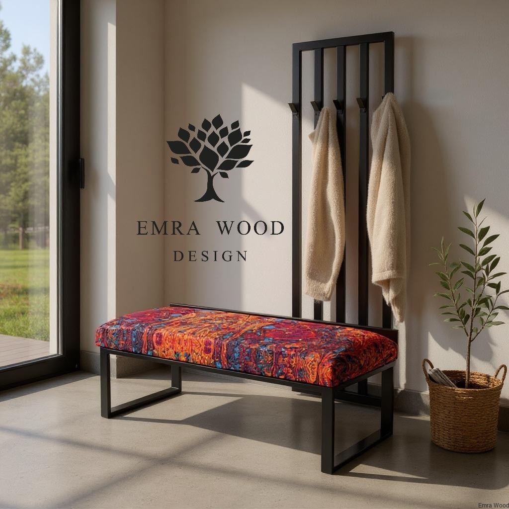 ŁAWKA METALOWA TAPICEROWANA SIEDZISKO GŁADKIE Lawa 01 / Stelaż Stal Czarna Malowana Proszkowo / model LGM-183