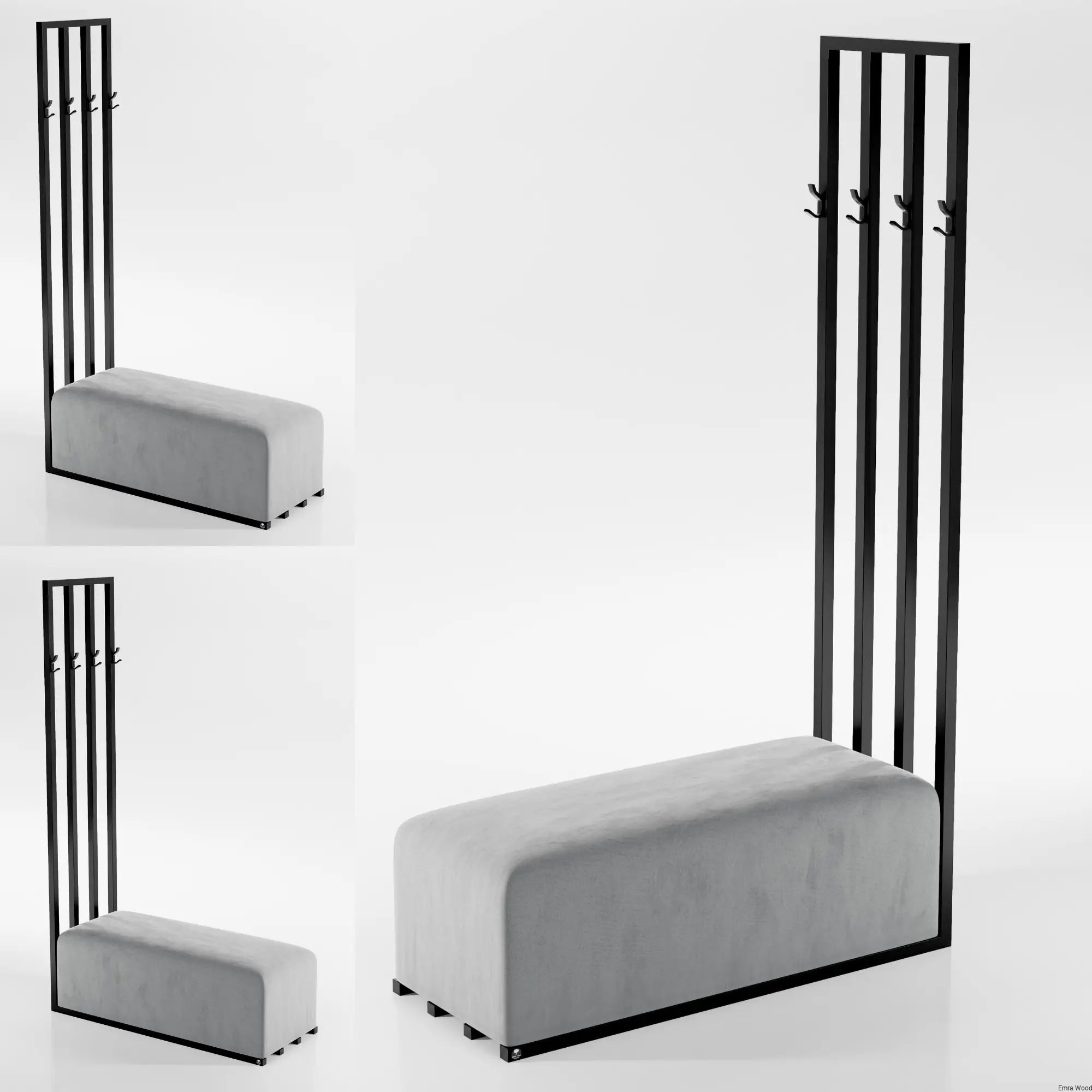 ŁAWKA METALOWA TAPICEROWANA SIEDZISKO GŁADKIE Popiel Casablanca 2314 / Stelaż Stal Czarna Malowana Proszkowo / model LGM-300